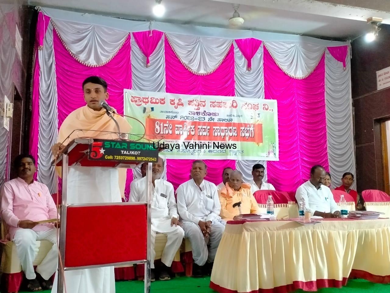 ಉದಯವಾಹಿನಿ ತಾಳಿಕೋಟಿ : ಮನುಷ್ಯ ತನ್ನ ಜೀವನ ಅವಶ್ಯಕತೆಗಳಿಗಾಗಿ ಅನಿವಾರ್ಯ ಸಂದರ್ಭದಲ್ಲಿ ಸಾಲ ತೆಗೆದುಕೊಳ್ಳಲೇ ಬೇಕಾಗುತ್ತದೆ ದುಡ್ಡು ಜೀವನದ ಅತ್ಯಗತ್ಯವಾಗಿದೆ ಅದು ಇಲ್ಲದಿದ್ದರೆ ಏನು ಮಾಡಲು ಸಾಧ್ಯವಿಲ್ಲ ಆದರೆ ನಾವು ಮಾಡಿದ ಸಾಲ ನಮ್ಮ ಬದುಕನ್ನೇ ನುಂಗುವ ಹಾಗೆ ಇರಬಾರದು ಸಾಲ ಮರಳಿಸುವ ಉದ್ದೇಶವಿಟ್ಟು ಸಾಲ ಮಾಡುವುದನ್ನು ಕಲಿಯಿರಿ ಎಂದು ಶ್ರೀ ಖಾಸ್ಗತೇಶ್ವರ ಮಠದ ಪರಮಪೂಜ್ಯ ಶ್ರೀ ಸಿದ್ದಲಿಂಗ ಮಹಾಸ್ವಾಮಿಗಳು ಹೇಳಿದರು. ರವಿವಾರ ಪಟ್ಟಣದ ಶ್ರೀ ವಾಸವಿ ಕಲ್ಯಾಣ ಮಂಟಪದಲ್ಲಿ ಪ್ರಾಥಮಿಕ ಕೃಷಿ ಪತ್ತಿನ ಸಹಕಾರಿ ಸಂಘ ನಿಯಮಿತ ಇದರ 81ನೇ ವಾರ್ಷಿಕ ಸರ್ವ ಸಾಧಾರಣ ಸಭೆಯ ಸಾನಿಧ್ಯ ವಹಿಸಿ ಅವರು ಮಾತನಾಡಿದರು. ಮನುಷ್ಯನ ಬದುಕು ಶಾಶ್ವತವಲ್ಲ ನಾವು ಸಂಪಾದಿಸಿದ ಸಂಪತ್ತು ನಮಗೆ ಸಿಕ್ಕ ಈ ಅಧಿಕಾರ ಎಲ್ಲವನ್ನು ಒಂದು ದಿನ ಬಿಟ್ಟು ಹೋಗಬೇಕಾಗಿದೆ ಈ ಪರಮ ಸತ್ಯವನ್ನು ನಾವೆಂದು ಮರೆಯಬಾರದು ಮಾನವೀಯತೆ ಹಾಗೂ ಪರಸ್ಪರ ಸಹಕಾರ ದೊಂದಿಗೆ ಬದುಕಲು ಪ್ರಯತ್ನಿಸಿ ಎಂದರು. ಸಹಕಾರ ಸಂಘಗಳ ಉಪನಿಬಂಧಕಿ ಎಸ್ ಕೆ ಭಾಗ್ಯಶ್ರೀ ಅವರು ಮಾತನಾಡಿ ಸಹಕಾರ ಸಂಘಗಳ ಅಭಿವೃದ್ಧಿಗೆ ಸದಸ್ಯರ ಸಹಕಾರ ಅಗತ್ಯವಾಗಿದೆ ರೈತಾಪಿ ಜನರ ಅನುಕೂಲಕ್ಕಾಗಿ ಪತ್ತಿನ ಸಹಕಾರಿ ಸಂಘಗಳನ್ನು ಅಸ್ತಿತ್ವಕ್ಕೆ ತರಲಾಗಿದೆ ಈ ಸಂಘವು ಸುಮಾರು 45 ಲಕ್ಷ ರೂಪಾಯಿ ಲಾಭವನ್ನು ಮಾಡಿರುವುದು ಅತ್ಯುತ್ತಮವಾದ ಸಾಧನೆಯಾಗಿದೆ ಕೇಂದ್ರ ಹಾಗೂ ರಾಜ್ಯ ಸರ್ಕಾರ ಜಾರಿಗೆ ತಂದಿರುವ ಹಲವಾರು ಯೋಜನೆಗಳನ್ನು ಸದುಪಯೋಗವನ್ನು ಮಾಡಿಕೊಳ್ಳಲು ಪ್ರಯತ್ನಿಸಬೇಕು ಎಂದರು. ಪ್ರವೀಣ್ ಪಾಟೀಲ್ ವಾರ್ಷಿಕ ವರದಿ ವಾಚಿಸಿದರು. ಸಂಘದ ಅಧ್ಯಕ್ಷ ಬಸವರಾಜ್ ಎಂ ಕುಂಬಾರ ಕಾರ್ಯಕ್ರಮದ ಅಧ್ಯಕ್ಷತೆಯನ್ನು ವಹಿಸಿದ್ದರು. ಕೈಲಾಸಪೇಟೆ ಬಸವ ಪ್ರಭು ದೇವರು ಸಮ್ಮುಖವನ್ನು ವಹಿಸಿದ್ದರು. ಇದೇ ಸಂದರ್ಭದಲ್ಲಿ ಈ ಬಾರಿ ಎಸ್ ಎಸ್ ಎಲ್ ಸಿ ಹಾಗೂ ಪಿಯುಸಿಯಲ್ಲಿ ಅತಿ ಹೆಚ್ಚು ಅಂಕ ಗಳಿಸಿದ ಸಂಘದ ಸದಸ್ಯರ ಮಕ್ಕಳಿಗೆ ಪ್ರೋತ್ಸಾಹ ಧನ ನೀಡಿ ಗೌರವಿಸಲಾಯಿತು. ವೇದಿಕೆಯಲ್ಲಿ ತಾಲೂಕ ಸಹಕಾರ ಅಭಿವೃದ್ಧಿ ಅಧಿಕಾರಿ ವಿಜಯಕುಮಾರ್ ಉತ್ತನಾಳ ನಿವೃತ್ತ ಪ್ರಬಂಧಕ ಎಸ್ ಜಿ ಕುಂಬಾರ. ಚೇತನ್ ಬಾವಿಕಟ್ಟಿ ಸಂಘದ ಮಾಜಿ ಅಧ್ಯಕ್ಷ ಎಸ್.ಬಿ. ಇಲ್ಕಲ್ ಉಪಾಧ್ಯಕ್ಷ ಡಿ ಎಸ್ ಗೋಟಗುಣಕಿ. ಆಡಳಿತ ಮಂಡಳಿಯ ಸದಸ್ಯರಾದ ಎಸ್ ಬಿ ಇಲಕಲ್ಲ. ಸಿ ಎಸ್ ದೇಸಾಯಿ. ಡಿ ವಿ ಪಾಟೀಲ್. ಜಿ.ವಿ. ಮೂಲಿಮನಿ ಪರುಶುರಾಮ್ ತಂಗಡಗಿ ಎಸ್ ಆರ್ ಕಟ್ಟಿಮನಿ.ವಾಯ್.ಡಿ.ಬರದೇನಾಳ. ಜೆ ಎಸ್ ಬೊಮ್ಮಗೊಡ. ಎನ್ ಎಂ ಗೊರಗುಂಡಗಿ ಮುಖ್ಯ ಕಾರ್ಯನಿರ್ವಾಹಕ ಶಂಕರ್ ಗೌಡ ಪಾಟೀಲ್ ಹಾಗೂ ಸಿಬ್ಬಂದಿಗಳು ಇದ್ದರು