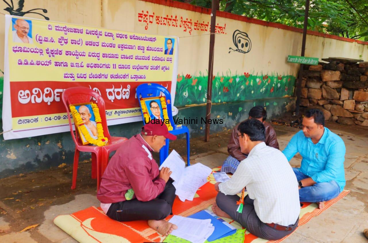 ಉದಯವಾಹಿನಿ,ಮುದ್ದೇಬಿಹಾಳ: ತನಿಖೆ ಮತ್ತು ೫ ಪ್ರಮುಖ ಬೇಡಿಕೆಗಳ ಈಡೇರಿಕೆಗೆ ಆಗ್ರಹಿಸಿ ಪುರಸಭೆಯ ಮಾಜಿ ನಾಮನಿರ್ದೇಶಿತ ಸದಸ್ಯ ಪ್ರಸನ್ನಕುಮಾರ ಮಠ ಮತ್ತಿತರರು ಇಲ್ಲಿನ ಬಿಇಓ ಕಚೇರಿ ಆವರಣದಲ್ಲಿ ಸೋಮವಾರದಿಂದ ಅನಿರ್ಧಿಷ್ಟಾವಧಿಯ ಧರಣಿ ಸತ್ಯಾಗ್ರಹ ಪ್ರಾರಂಭಿಸಿದರು. ದಿ ಮುದ್ದೇಬಿಹಾಳ ವೀರಶೈವ ವಿದ್ಯಾವರ್ಧಕ ಅಸೋಶಿಯೇಶನ್ (ವಿಬಿಸಿ ಪ್ರೌಢಶಾಲೆ) ಆಡಳಿತ ಮಂಡಳಿ ಅಕ್ರಮವಾಗಿ ಕಬ್ಜಾ ಹೊಂದಿರುವ ಭೂಮಿಯಲ್ಲಿ ಶೈಕ್ಷಣಿಕ ಕಾಯ್ದೆಯ ವಿರುದ್ಧ ಕಾನೂನು ಬಾಹಿರ ಚಟುವಟಿಕೆ ವಿರೋಧಿಸಿ, ಶಿಕ್ಷಣ ಇಲಾಖೆಯ ಡಿಡಿಪಿಐ, ಬಿಇಓ ಅವರ ವಿರುದ್ಧ ೧೧ ಉಲ್ಲೇಖಗಳ ತನಿಖೆ ನಡೆಸಬೇಕು ಎಂದು ಒತ್ತಾಯಿಸಲಾಗಿದೆ. ವಿಬಿಸಿ ಪ್ರೌಢಶಾಲೆಯ ಸರ್ವೆ ನಂಬರ್ ೮೪ರಲ್ಲಿನ ಸಿಟಿಎಸ್ ೨೬೦೬ನ್ನು ಅಕ್ರಮವಾಗಿ ಶಿಕ್ಷಣಕ್ಕೆಂದು ಕಬ್ಜಾ ಮಾಡಿಕೊಂಡು ಶಿಕ್ಷಣ ಕಾಯ್ದೆಗೆ ವಿರುದ್ಧವಾಗಿ ವಾಣಿಜ್ಯ ಉದ್ದೇಶಕ್ಕೆ ಬಳಸುವುದನ್ನು ನಿಲ್ಲಿಸಿ ವಾಣಿಜ್ಯ ಉದ್ದೇಶದ ಕಟ್ಟಡ, ಚಟುವಟಿಕೆ ತೆರವುಗೊಳಿಸಬೇಕು. ಅಕ್ರಮ ಬಳಕೆ ವಿರುದ್ಧ ಶಿಕ್ಷಣ ಇಲಾಖೆಯು ಪ್ರಕರಣ ದಾಖಲಿಸಬೇಕು. ೧೧ ಉಲ್ಲೇಖಗಳ ಕುರಿತು ಸೂಕ್ತ ತನಿಖೆ ನಡೆಸಬೇಕು. ಶಿಕ್ಷಣ ಕಾಯ್ದೆ ವಿರುದ್ಧ ನಡೆದುಕೊಳ್ಳುತ್ತಿರುವ ತಪ್ಪಿತಸ್ತರ ವಿರುದ್ಧ ಸೂಕ್ತ ಕ್ರಮ ಕೈಕೊಳ್ಳಬೇಕು. ಎಲ್ಲ ಬೇಡಿಕೆಗಳ ಈಡೇರಿಕೆಗೆ ಡಿಡಿಪಿಐ ಅವರಿಂದಲೇ ಲಿಖಿತ ಉತ್ತರ ಒದಗಿಸಬೇಕು ಎಂದು ಈ ಕುರಿತು ಬಿಇಓಗೆ ಸಲ್ಲಿಸಿದ ಮನವಿಯಲ್ಲಿ ಒತ್ತಾಯಿಸಲಾಗಿದೆ. ಧರಣಿ ಮಾಹಿತಿ ಪಡೆದು ಪ್ರಭಾರ ಬಿಇಓ ಯು.ಬಿ.ಧರಿಕಾರ ಸ್ಥಳಕ್ಕೆ ಆಗಮಿಸಿ ಧರಣಿ ನಿರತರ ಅಹವಾಲು ಆಲಿಸಿ ಅವರು ಸಲ್ಲಿಸಿದ ದಾಖಲೆ ಪರಿಶೀಲಿಸಿದರು. ಈ ಕುರಿತು ಮೇಲಧಿಕಾರಿಗಳೊಂದಿಗೆ ಮಾತನಾಡಿ ಮುಂದಿನ ತೀರ್ಮಾನ ಪ್ರಕಟಿಸುವುದಾಗಿ ಭರವಸೆ ನೀಡಿದರು. ಶಿಕ್ಷಣ ಇಲಾಖೆಯ ಬೋಧಕೇತರ ಸಿಬ್ಬಂದಿ ಸಂಘದ ತಾಲೂಕು ಅಧ್ಯಕ್ಷ ಹಿರೇಮಠ ಮತ್ತಿತರರು ಇದ್ದರು.
