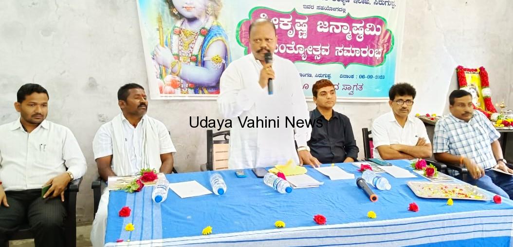 ಉದಯವಾಹಿನಿ ಸಿರುಗುಪ್ಪ : ನಗರದ ಸಿಡಿಪಿಓ ಸಭಾಂಗಣದಲ್ಲಿ ಜಿಲ್ಲಾ ಮತ್ತು ತಾಲೂಕು ಪಂಚಾಯಿತಿ, ತಾಲೂಕಾಡಳಿತ ಹಾಗೂ ತಾಲೂಕು ಹಿಂದುಳಿದ ವರ್ಗಗಳ ಕಲ್ಯಾಣ ಇಲಾಖೆಗಳ ಸಹಯೋಗದಲ್ಲಿ ನಡೆದ ಶ್ರೀ ಕೃಷ್ಣ ಜನ್ಮಾಷ್ಟಮಿಯ ಜಯಂತ್ಯೋತ್ಸವ ಕಾರ್ಯಕ್ರಮಕ್ಕೆ ಶಾಸಕ ಬಿ.ಎಮ್.ನಾಗರಾಜ ಭಾವಚಿತ್ರಕ್ಕೆ ಪೂಜೆ ಸಲ್ಲಿಸುವುದರೊಂದಿಗೆ ಚಾಲನೆ ನೀಡಿದರು.