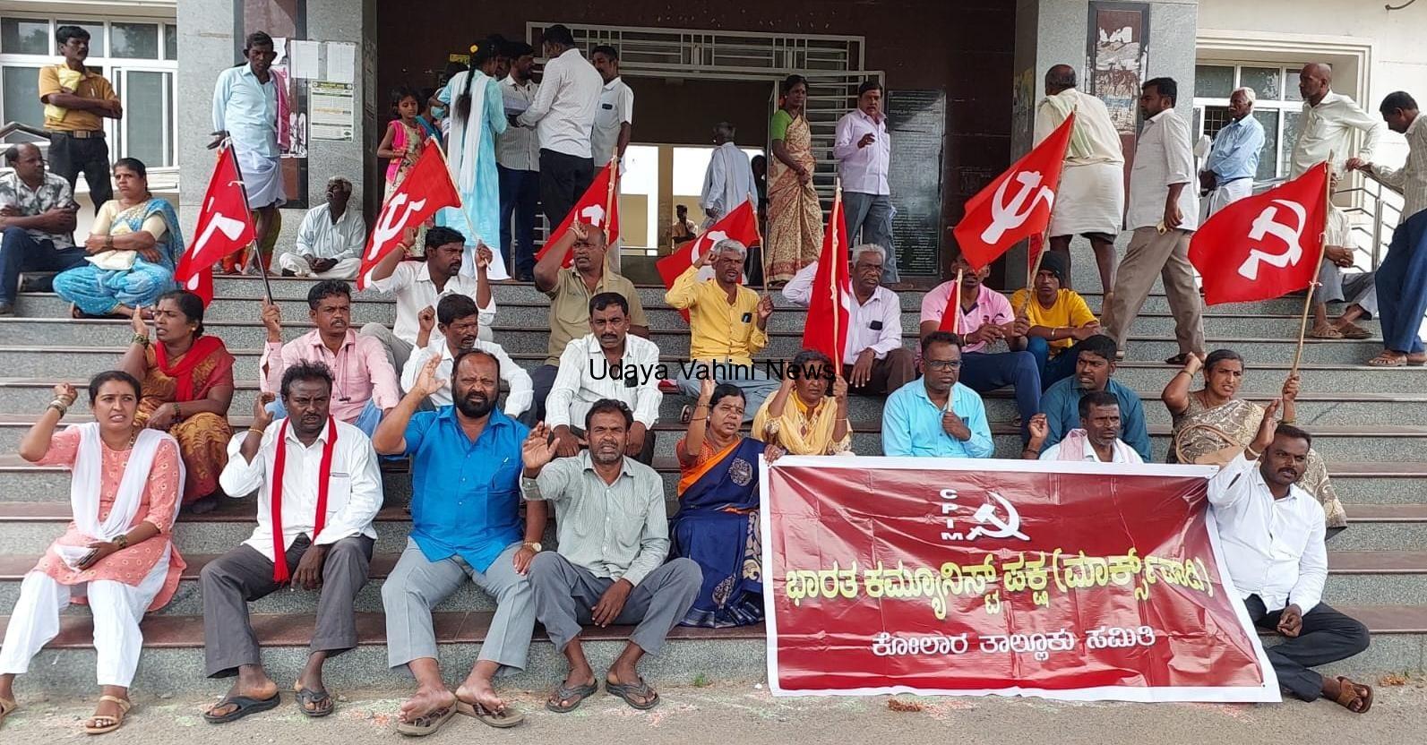 ಉದಯವಾಹಿನಿ ಕೋಲಾರ :- ಕೇಂದ್ರ ಸರಕಾರದ ಒಕ್ಕೂಟ ವ್ಯವಸ್ಥೆಯ ವಿರೋಧಿ ನೀತಿಗಳಿಂದಾಗಿ ರೈತರು, ಸಾಮಾನ್ಯ ಜನರು ಹಾಗೂ ಕಾರ್ಮಿಕ ವರ್ಗವನ್ನು ಶೋಷಣೆಗೆ ಒಳಪಡಿಸಿದ್ದು ಜನತೆಯ ಹಕ್ಕೊತ್ತಾಯಗಳ ಜಾರಿಗೆ ಒತ್ತಾಯಿಸಿ ಸಿಪಿಐಎಂ ಪಕ್ಷದಿಂದ ತಹಶಿಲ್ದಾರ್ ಕಛೇರಿ ಮುಂದೆ ಗುರುವಾರ ಪ್ರತಿಭಟನೆ ನಡೆಸಿದರು.ದೇಶದಲ್ಲಿ ಕಳೆದ 9 ವರ್ಷಗಳಿಂದ ಪ್ರಧಾನಿ ಮೋದಿ ಹಾಗೂ ಕೇಂದ್ರ ಸರ್ಕಾರವು ಪ್ರತಿಯೊಂದು ಹಂತದಲ್ಲೂ ಕಾರ್ಪೊರೇಟ್ ಸಂಸ್ಥೆಗಳ ಪರವಾಗಿ ಆಡಳಿತ ನಡೆಸಿದ್ದು ಸಾಮಾನ್ಯ ವರ್ಗವನ್ನು ನಿರ್ಲಕ್ಷ್ಯ ತೋರಿದ್ದಾರೆ ಚುನಾವಣಾ ಪೂರ್ವದಲ್ಲಿ ನೀಡಿದ್ದ ಆಶ್ವಾಸನೆಗಳನ್ನು ಈಡೇರಿಸಲಿಲ್ಲ ಬೆಲೆ ಏರಿಕೆಯಿಂದ ಜನಸಾಮಾನ್ಯರು ತತ್ತರಿಸುತ್ತಿದ್ದಾರೆ. ದೇಶದ ಆರ್ಥಿಕತೆ ಕುಸಿಯುತ್ತಿದೆ. ಸರ್ಕಾರಿ ಆಸ್ತಿಗಳನ್ನು ಖಾಸಗೀಕರಣಗೊಳಿಸುವ ಮೂಲಕ ದೇಶವನ್ನು ದಿವಾಳಿಯತ್ತ ಕೊಂಡೊಯ್ಯುತ್ತಿದೆ ಎಂದು ಆರೋಪಿಸಿದರು.ಈ ಸಂದರ್ಭದಲ್ಲಿ ಸಿಪಿಐಎಂ ಪಕ್ಷದ ತಾಲೂಕು ಕಾರ್ಯದರ್ಶಿ ಟಿ.ಎಂ ವೆಂಕಟೇಶ್ ಮಾತನಾಡಿ ದೇಶಾದ್ಯಂತ ಬೆಲೆ ಏರಿಕೆ ನಿಲ್ಲಿಸಿ, ಉದ್ಯೋಗ ಒದಗಿಸಿ ರೈತರ ಸಮಸ್ಯೆಗಳ ಪರಿಹಾರಕ್ಕೆ ಒತ್ತಾಯಿಸಿ ಕೇಂದ್ರ ಸರ್ಕಾರದ ವಿರುದ್ಧ ಸೆ.4 ರಿಂದ 7 ರವರೆಗೆ ಪ್ರಚಾರಾಂದೋಲನ ನಡೆಸಲಾಗಿದೆ ಮೋದಿ ಸರ್ಕಾರ ಜನತೆಯನ್ನು ದಿವಾಳಿ ಮಾಡಿ ಅಗತ್ಯ ವಸ್ತುಗಳ ಬೆಲೆ ಏರಿಕೆ ಮಾಡಿದೆ, ಇದರಿಂದ ಜನತೆ ಹೈರಾಣಾಗಿದ್ದು, ಕಳೆದ 5 ವರ್ಷಗಳಲ್ಲಿ ಅಗತ್ಯ ವಸ್ತುಗಳ ಬೆಲೆಯಲ್ಲಿ ಶೇ 67 ರಷ್ಟು ಹೆಚ್ಚಳವಾಗಿದೆ. ಅಡುಗೆ ಅನಿಲ, ಪೆಟ್ರೋಲ್, ಡೀಸೆಲ್, ರಾಸಾಯನಿಕ ಗೊಬ್ಬರ, ಕೃಷಿ ಉಪಕರಣಗಳು ಹೀಗೆ ಎಲ್ಲಾ ಅಗತ್ಯ ವಸ್ತುಗಳ ಬೆಲೆ ಗಗನಮುಖಿಯಾಗಿವೆ. ಎಲ್ಲಾ ವಸ್ತುಗಳ ಮೇಲೆ ಮನಸೋ ಇಚ್ಚೆಯಂತೆ ವಿಧಿಸುತ್ತಿರುವ ಜಿಎಸ್ಟಿ ತೆರಿಗೆ ಮತ್ತು ಸರ್ಕಾರ ನೀಡುತ್ತಿದ್ದ ಸಹಾಯ ಧನದ ಕಡಿತ ಇವೆಲ್ಲ ದೇಶವನ್ನು ದಿವಾಳಿಯಂಚಿಗೆ ಕೊಂಡೊಯ್ದಿವೆ ಎಂದು ಕಿಡಿಕಾರಿದರು.ಈ ಸಂದರ್ಭದಲ್ಲಿ ಪಕ್ಷದ ಜಿಲ್ಲಾ ಸಮಿತಿ ಸದಸ್ಯ ವಿಜಯಕೃಷ್ಣ ಮಾತನಾಡಿ ಕೃಷಿ ರಂಗದಲ್ಲೂ ಉದ್ಯೋಗ ಸೃಷ್ಠಿಯಾಗುತ್ತಿಲ್ಲ. ಎಲ್ಲಾ ಕ್ಷೇತ್ರಗಳಲ್ಲಿ ಸಾರ್ವಜನಿಕ ಹೂಡಿಕೆ ಮಾಡಿ ಉದ್ಯೋಗ ಸೃಷ್ಠಿಸಬೇಕಿದ್ದ ಸರ್ಕಾರ ಎಲ್ಲವನ್ನು ಕಾರ್ಪೋರೇಟ್ ಸಂಸ್ಥೆಗಳಿಗೆ ಧಾರೆ ಎರೆದು ಯುವ ಜನರ ಬದುಕು ಮತ್ತು ಭವಿಷ್ಯವನ್ನು ಕತ್ತಲೆಗೆ ನೂಕಿದೆ ಕರ್ನಾಟಕ ರಾಜ್ಯದಿಂದ ಕೇಂದ್ರ ಸರ್ಕಾರ ಸುಮಾರು 4 ಲಕ್ಷ ಕೋಟಿ ತೆರಿಗೆ ಸಂಗ್ರಹ ಮಾಡುತ್ತಿದೆ. ಅದರಲ್ಲಿ ಕೇವಲ 50 ಸಾವಿರ ಕೋಟಿಗಳನ್ನು ಮಾತ್ರ ರಾಜ್ಯಕ್ಕೆ ವಾಪಸ್ಸು ನೀಡುತ್ತಿದೆ, ಇದು ಅನ್ಯಾಯವಾಗಿದೆ ಕೆಲವು ರಾಜ್ಯಗಳಿಂದ ಬಿಡಿ ಕಾಸು ವಸೂಲಿ ಮಾಡದೆ ಮೂಟೆಗಟ್ಟಲೇ ವಾಪಸ್ ಕೊಡಲಾಗುತ್ತಿದೆ. ಈ ತಾರತಮ್ಯ ನಿವಾರಣೆಯಾಗದೆ ರಾಜ್ಯದ ಅಭಿವೃದ್ಧಿ ಸಾಧ್ಯವಿಲ್ಲ ಎಂದರು.ಕೇಂದ್ರ ಸರ್ಕಾರ ಕೂಡಲೇ ಎಲ್ಲಾ ಅಗತ್ಯ ವಸ್ತುಗಳು ಮತ್ತು ಜನರ ಔಷಧಿಗಳ ಬೆಲೆಗಳ ಮೇಲೆ ನಿಯಂತ್ರಣವನ್ನು ಮರು ಸ್ಥಾಪಿಸಬೇಕು ರಾಜ್ಯದ ಅನ್ಯಭಾಗ್ಯ ಯೋಜನೆಗೆ ಹೆಚ್ಚುವರಿಯಾಗಿ 5 ಕೆಜಿ ಅಕ್ಕಿಯನ್ನು ನೀಡಬೇಕು ಪೆಟ್ರೋಲ್, ಡೀಸೆಲ್, ಗ್ಯಾಸ್ ಬೆಲೆಗಳ ಮೇಲಿನ ತೆರಿಗೆಗಳನ್ನು ಕಡಿತ ಮಾಡಿ ಕೃಷಿ ಹೂಡಿಕೆಗಳಾದ ಬೀಜ, ಗೊಬ್ಬರ, ಕೀಟನಾಶಕ ಹಾಗೂ ಕೃಷಿ ಉಪಕರಣಗಳ ಮೇಲೆ ಹಾಗೂ ಆಹಾರ ಧಾನ್ಯಗಳಿಗೂ ಮತ್ತು ವಸ್ತುಗಳಿಗೆ ಸಹಾಯಧನ ಒದಗಿಸಬೇಕು ಹಣದುಬ್ಬರ, ವಿದ್ಯುತ್ ತಿದ್ದುಪಡಿ ಕಾಯ್ದೆಯನ್ನು ವಾಪಸ್ ಪಡೆಯಬ