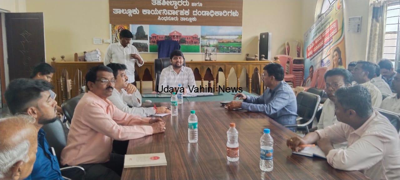 ಉದಯವಾಹಿನಿ ಸಿಂಧನೂರು: ಕಲ್ಯಾಣ ಉತ್ಸವ ದಿನಾಚರಣೆ ಕುರಿತು ತಾಲ್ಲೂಕಿನಲ್ಲಿ ಪ್ರತಿಯೊಂದು ಇಲಾಖೆಯ ತಮ್ಮ ತಮ್ಮ ಕಛೇರಿ ಮೇಲೆ ರಾಷ್ಟ್ರೀಯ ಧ್ವಜವನ್ನು ಧ್ವಜಾರೋಹಣ ನೆರವೇರಿಸಿಬೇಕು ತಾಲ್ಲೂಕು ತಹಶೀಲ್ದಾರ್ ಅರುಣ್ ಎಚ್ ದೇಸಾಯಿ ತಿಳಿಸಿದರು.ತಾಲ್ಲೂಕು ತಹಶೀಲ್ದಾರ್ ಸಭಾಂಗಣದಲ್ಲಿ ನಡೆದ ಕಲ್ಯಾಣ ಕರ್ನಾಟಕ ಉತ್ಸವ ಹಾಗೂ ವಿಶ್ವಕರ್ಮ ಜಯಂತಿ ಕುರಿತು ಪೂರ್ವ ಭಾವಿ ಸಭೆ ಅಧ್ಯಕ್ಷತೆ ವಹಿಸಿ ಮಾತನಾಡಿದರು ತಾಲ್ಲೂಕು ದಂಡಾಧಿಕಾರಿ ಅವರ ಸೆಪ್ಟೆಂಬರ್ 17 ರಂದು ಕಲ್ಯಾಣ ಕರ್ನಾಟಕ ಉತ್ಸವ ಮತ್ತು ವಿಶ್ವಕರ್ಮ ಜಯಂತಿ ಎರಡು ಹೊಂದಿ ಸಲ ಬಂದಿದ್ದರಿಂದ ತಾಲ್ಲೂಕು ತಹಶೀಲ್ದಾರ್ ಕಛೇರಿಯಲ್ಲಿ ಬೆಳಿಗ್ಗೆ 9-00.ಗಂಟೆಗೆ ವಿಶ್ವಕರ್ಮ ಭಾವಚಿತ್ರಕ್ಕೆ ಎಲ್ಲಾ ಸಮುದಾಯಗಳ ಮುಖಂಡರು ಹಾಗೂ ಸಾಮಾಜದ ಬಂಧುಗಳು ಸೇರಿದಂತೆ ಇತರರು ಪುಷ್ಪಾರ್ಚನೆ ಸಲ್ಲಿಸುವ ಜೊತೆಗೆ ಧ್ವಜಾರೋಹಣ ನೆರವೇರಿಸಲಾಗುತ್ತದೆ ಎಂದು ಹೇಳಿದರು ಆದರಿಂದ ತಾಲ್ಲೂಕಿನ ಪ್ರತಿಯೊಂದು ಇಲಾಖೆಯ ಅಧಿಕಾರಿಗಳು ತಮ್ಮ ತಮ್ಮ ಇಲಾಖೆಯಲ್ಲಿ ಧ್ವಜಾರೋಹಣ ಮಾಡಿಕೊಂಡು ತಾಲೂಕು ಕಛೇರಿಗೆ ಸಮಯ 9-30 ವರಿಗೆ ಎಲ್ಲರೂ ಅಧಿಕಾರಿಗಳು ಬರಬೇಕು ಮತ್ತು ತಾಲೂಕು ಆಡಳಿತ ಮಂಡಳಿ ವತಿಯಿಂದ ಶಾಸಕ ಹಂಪನಗೌಡ ಬಾದರ್ಲಿ ಅವರು ಅಧ್ಯಕ್ಷತೆಯಲ್ಲಿ ಧ್ವಜಾರೋಹಣ ನೆರವೇರಿಸಲಾಗುತ್ತದೆ. ಈ ಸಂದರ್ಭದಲ್ಲಿ ಎರಡು ಕಾರ್ಯಕ್ರಮಗಳನ್ನು ಅಚ್ಚುಕಟ್ಟಾಗಿ ಶಿಸ್ತು ಬದ್ಧವಾಗಿ ಆಚರಣೆ ಮಾಡಬೇಕೆಂದು ಎಲ್ಲ ಅಧಿಕಾರಿಗಳಿಗೆ ತಾಲೂಕು ತಹಶೀಲ್ದಾರ್ ಅರುಣ್ ಕುಮಾರ್ ಎಚ್ ದೇಸಾಯಿ ಅವರ ಸೂಚನೆ ನೀಡಿದರು.
