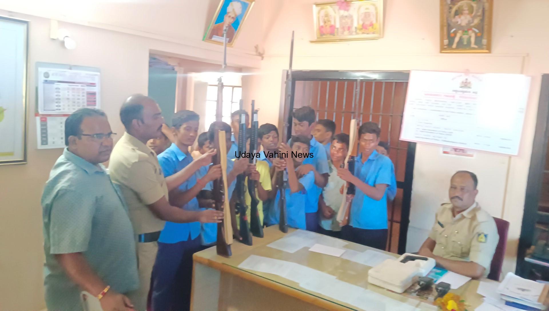ಉದಯವಾಹಿನಿ,ಶಿಡ್ಲಘಟ್ಟ: ನಗರದ ಪೊಲೀಸ್ ಠಾಣೆಯಲ್ಲಿನ ದೈನಂದಿನ ಕರ್ತವ್ಯ, ಜನಸಾಮಾನ್ಯರ ಹಿತರಕ್ಷಣೆ, ಸಾರ್ವಜನಿಕರ ಆಸ್ತಿಪಾಸ್ತಿ ರಕ್ಷಣೆ, ಹಕ್ಕುಗಳ ರಕ್ಷಣೆ, ಮಕ್ಕಳ ಹಕ್ಕುಗಳ ಬಗ್ಗೆ ಪೊಲೀಸರ ಪಾತ್ರವನ್ನು ಪಿಎಸ್ಐ ವೇಣುಗೋಪಾಲ್ ಎಂ ವಿವರಿಸಿದರು. ನಗರದ ಸರ್ಕಾರಿ ಪ್ರೌಢ ಶಾಲೆಯ 8 ನೇ ತರಗತಿ ಮಕ್ಕಳಿಗೆ ಶಿಡ್ಲಘಟ್ಟ ಪೊಲೀಸ್ ಠಾಣೆಯಲ್ಲಿನ ತೆರೆದ ಮನೆ ಕಾರ್ಯಕ್ರಮದಲ್ಲಿ ಭಾಗವಹಿಸಿದ್ದರು. ಪೊಲೀಸ್ ಅವರನ್ನ ನೋಡಿದರೆ ದೂರ ಓಡುವ ಮಕ್ಕಳ ನಡುವೆ ತೆರೆದ ಮನೆಯಲ್ಲಿ ಪೊಲೀಸರು ಮಹತ್ತರ ಪಾತ್ರ ನಿರ್ವಹಿಸುತ್ತಾರೆ ಎಂಬುದನ್ನು ಮಕ್ಕಳಿಗೆ ಸಂಪೂರ್ಣ ಮಾಹಿತಿ ನೀಡುವುದರ ಜೊತೆಗೆ ರಕ್ಷಣೆಗಾಗಿ ಅಥವಾ ಗಲಾಟೆ ಸಮಯದಲ್ಲಿ ಬಳಸುವ ವಸ್ತುಗಳ ಬಗ್ಗೆ ಪಿಸಿ ಮಸೂದ್ ವಲೀಸಾಬ್ ಮಾಹಿತಿ ನೀಡಿದರು.ಮಕ್ಕಳು ಓದಿನ ಜೊತೆಗೆ ಸಂವಿಧಾನದಲ್ಲಿನ ಕಾನೂನಿನ ಅರಿವಿರಬೇಕು ನಿಮಗೆ ಅಥವಾ ನಿಮ್ಮ ಕುಟುಂಬದಲ್ಲಿ ಯಾವುದೆ ರೀತಿಯ ಕಾನೂನಿನ ಕಣ್ಣಿಗೆ ಸಿಕ್ಕಿಕೊಳ್ಳುವಂತಹ ಘಟನೆಗಳು ಬಂದಾಗ ಕಾನೂನಿನ ಅಡಿಯಲ್ಲಿ ಯಾವರೀತಿ ನಿಭಾಯಿಸಬೇಕು ಎಂಬ ಸಾಮರ್ಥ್ಯವನ್ನು ನಿಮ್ಮಲ್ಲಿ ಬೆಳೆಸಿಕೊಳ್ಳಬೇಕು ಎಂದರು. ಸಾರ್ವಜನಿಕರು ನ್ಯಾಯಕ್ಕಾಗಿ ಠಾಣೆಗೆ ಬಂದರೆ ಮೊದಲು ದೂರನ್ನು ತೆಗೆದುಕೊಳ್ಳುವುದು ಹೇಗೆ ಮತ್ತು ತನಿಖೆಗೆ ಹಾಜರಾಗಿ ಎಫ್ಐಆರ್ ದಾಖಲಿಸುವುದು ಹೇಗೆ ಮತ್ತು ಕೊನೆಯ ಹಂತದಲ್ಲಿ ನ್ಯಾಯಾಲಯಕ್ಕೆ ತನಿಖಾ ವರದಿ ಸಲ್ಲಿಸುವುದರ ಬಗ್ಗೆ ಸಂಪೂರ್ಣ ಮಾಹಿತಿ ನೀಡಿದರು.ಸಂದರ್ಭದಲ್ಲಿ ಪಿಎಸ್ ಐ ಪದ್ಮಾವತಮ್ಮ. ಎಎಸ್ಐ ಸೀನಪ್ಪ. ಹೆಚ್ ಸಿ ಉಮಾಶಂಕರ್, ಪಿಸಿ ಶಿವರಾಜ್, ಸರ್ಕಾರಿ ಪ್ರೌಢ ಶಾಲೆಯ ಶಿಕ್ಷಕ ಸತೀಶ್ ಹಾಗೂ ವಿದ್ಯಾರ್ಥಿಗಳು ಮತ್ತು ಠಾಣಾ ಸಿಬ್ಬಂದಿ ಹಾಜರಿದ್ದರು.