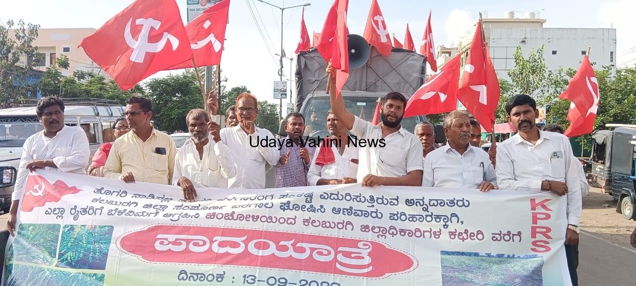 ಉದಯವಾಹಿನಿ,ಚಿಂಚೋಳಿ: ಕೇಂದ್ರ ಹಾಗೂ ರಾಜ್ಯ ಸರ್ಕಾರಗಳು ರೈತರ ವಿಮೆ ಹಣ ಬಿಡುಗಡೆ ಮಾಡಬೇಕು,ರೈತರ ಸಾಲಮನ್ನಾ ಮಾಡಬೇಕು,ಕಲಬುರ್ಗಿ ಜಿಲ್ಲೆಯನ್ನು ಸಂಪೂರ್ಣ ಅತಿವೃಷ್ಟಿ ಬರಗಾಲ ಪೀಡಿತವೆಂದು ಘೋಷಿಸಬೇಕು ಎಂದು ಕರ್ನಾಟಕ ಪ್ರಾಂತ ರೈತ ಸಂಘದ ಜಿಲ್ಲಾಧ್ಯಕ್ಷ ಶರಣಬಸಪ್ಪಾ ಮಮಶೇಟ್ಟಿ ಆಗ್ರಹಿಸಿದರು. ಪಟ್ಟಣದಲ್ಲಿ ಕರ್ನಾಟಕ ಪ್ರಾಂತ ರೈತ ಸಂಘದಿಂದ ವಿವಿಧ ಬೇಡಿಕೆಗಳನ್ನು ಈಡೇರಿಸಲು ಒತ್ತಾಯಿಸಿ ಡಾ.ಬಿ.ಆರ್.ಅಂಬೇಡ್ಕರ್ ವೃತ್ತದಿಂದ ಕಲಬುರ್ಗಿ ಜಿಲ್ಲಾಧಿಕಾರಿ ಕಚೇರಿವರೆಗೆ ಪಾದಯಾತ್ರೆ ಜಾಥಾವನ್ನು ಪಟ್ಟಣದಲ್ಲಿ ತಹಸೀಲ್ದಾರ್ ಹಾಗೂ ಕೃಷಿ ನಿರ್ದೇಶಕರ ಮೂಲಕ ಮನವಿಪತ್ರ ಸಲ್ಲಿಸಿ ಮಾತನಾಡಿದ ಅವರು,ಕೇಂದ್ರ ಸರ್ಕಾರವು ಬಲಗಾಲ ಘೋಷಿಸಲು ಪ್ರಜಾಪ್ರಭುತ್ವದ ವ್ಯವಸ್ಥೆಯ ಮಾನದಂಡಗಳು ರೂಪಿಸಬೇಕು,ಗ್ರಾಮಗಳಲ್ಲಿ ಶುಧ್ಧ ಕುಡಿಯುವ ನೀರಿನ ವ್ಯವಸ್ಥೆ ಮಾಡಬೇಕು,ತಕ್ಷಣವೇ ಬಿಪಿಎಲ್ ಎಪಿಎಲ್ ತಾರತಮ್ಯ ಮಾಡದೆ ಬರಗಾಲ ಪರಿಹಾರ ರೇಷನ್ ವಿತರಣೆಯಲ್ಲಿ ಹೆಚ್ಚುವರಿ ಆಹಾರಧಾನ್ಯ ವಿತರಿಸಿ ಬೆಲೆ ಏರಿಕೆಗೆ ಕಡಿವಾಣ ಹಾಕಬೇಕು. ಜಾನುವಾರುಗಳಿಗೆ ಮೇವಿನ ಕೊರತೆ ಆಗದಂತೆ ಕ್ರಮವಹಿಸಿ ನೋಡಲ್ ಅಧಿಕಾರಿಗಳು ನೇಮಿಸಬೇಕು,ಕೇಂದ್ರ ಸರ್ಕಾರವು ರೈತರ,ಕೃಷಿ ಕೂಲಿಕಾರರ ಗ್ರಾಮೀಣ ಮಹಿಳೆಯರ ಸಾಲಮನ್ನಾ ಹಾಗೂ ಬಡ್ಡಿ ಮನ್ನಾ ಮಾಡಿ ಎಲ್ಲಾ ರೀತಿಯ ಸಾಲ ವಸೂಲಾತಿ ನಿಷೇಧಿಸಿ ಆದೇಶ ಹೊರಡಿಸಬೇಕು,ನರೇಗಾ ಯೋಜನೆಯ ಕೆಲಸ ದಿನಗಳು 200ದಿನಕ್ಕೆ ಹೆಚ್ಚಿಸಿ ಬರಗಾಲ ಕೂಲಿಯಾಗಿ 600ರೂ.ಪಾವತಿಸಬೇಕು,ರೈತರ ಆತ್ಮಹತ್ಯೆ ತಡೆಗಟ್ಟಲು ಕ್ರಮವಹಿಸಿ,ಗ್ರಾಪಂ ಮಟ್ಟದಲ್ಲಿ ಬರಗಾಲ ಪರಿಹಾರ ಕ್ರಮಗಳನ್ನು ಯೋಜಿಸಲು ವಿಶೇಷ ಗ್ರಾಮಸಭೆ ನಡೆಸಬೇಕು ಎಂದರು.