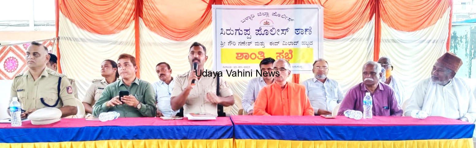 ಉದಯವಾಹಿನಿ, ಸಿರುಗುಪ್ಪ : ನಗರದ ಪೋಲೀಸ್ ಠಾಣೆಯ ಆವರಣದಲ್ಲಿ ಶ್ರೀಗೌರಿ ಗಣೇಶ ಮತ್ತು ಈದ್ಮಿಲಾದ್ ಹಬ್ಬದ ಆಚರಣೆ ಪ್ರಯುಕ್ತ ಜಿಲ್ಲಾ ಪೋಲೀಸ್ ವರಿಷ್ಠಾಧಿಕಾರಿ ರಂಜೀತ್ಕುಮಾರ್ ಭಂಡಾರ್ ಅವರ ನೇತೃತ್ವದಲ್ಲಿ ಶಾಂತಿ ಸಭೆ ನಡೆಯಿತು.ಸಭೆಯನ್ನುದ್ದೇಶಿಸಿ ಮಾತನಾಡಿದ ಅವರು ಹಬ್ಬಗಳು ಶಾಂತಿ ಸಾಮರಸ್ಯದ ಪ್ರತೀಕವಾಗಿವೆ. ಶಾಂತಿ ಸೌಹಾರ್ದಯುತವಾಗಿ ಹಬ್ಬಗಳನ್ನು ಆಚರಿಸಬೇಕು. ಯಾವುದೇ ಸುಳ್ಳು ಸುದ್ದಿಗೆ ಕಿವಿಗೊಡದೇ ಕಾನೂನು ಸುವ್ಯವಸ್ಥೆಗೆ ಭಂಗವನ್ನುAಟು ಮಾಡದೇ ಹಬ್ಬಗಳನ್ನು ಆಚರಿಸಿ, ಕಾನೂನು ಕಾಪಾಡಲು ಕೈಗೊಳ್ಳದೇ ನಿಮ್ಮ ಆಚರಣೆಗಳಿಗೆ ಮುಂದಾಗಬೇಕೆ0ದರು.ತಹಶೀಲ್ದಾರ್ ಎಚ್.ವಿಶ್ವನಾಥ ಅವರು ಮಾತನಾಡಿ ನಿಯಮಗಳಿಗೆ ಅನುಸಾರವಾಗಿ ಹಬ್ಬ ಆಚರಣೆ ಮುಂದಾಗುವುದರೊAದಿಗೆ ಉತ್ತಮ ಮನೋಭಾವನೆಯಿಂದ ಹಬ್ಬಗಳನ್ನು ಆಚರಿಸೋಣವೆಂದರು.ಬಸವಭೂಷಣ ಶ್ರೀಗಳು ಮಾತನಾಡಿ ಪ್ರಕೃತಿಯಲ್ಲಿ ಪಶು ಪಕ್ಷಿಗಳು ಶಾಂತಿ ಸಹಬಾಳ್ವೆಯಿಂದ ಜೀವಿಸುತ್ತಿರುವುದನ್ನು ನಾವು ಕಾಣುತ್ತಿದ್ದೇವೆ. ಅದರಂತೆ ಮಾನವರಾದ ನಾವು ಯಾರ ಧಾರ್ಮಿಕ ಆಚರಣೆಗೆ ಧಕ್ಕೆ ತರದೇ ಸಂವಿಧಾನ ನಿಯಮಗಳನ್ನೂ ಮೀರದೇ ಹಬ್ಬಗಳನ್ನು ಆಚರಿಸೋಣವೆಂದರು.ನಗರದ ಠಾಣೆಯಿಂದ ಶ್ರೀ ಮಹರ್ಷಿ ವಾಲ್ಮೀಕಿ ವೃತ್ತ, ಮಹಾತ್ಮ ಗಾಂದೀಜಿ ವೃತ್ತ, ಡಾ.ಬಿ.ಆರ್.ಅಂಬೇಡ್ಕರ್ ವೃತ್ತ, ಕಾಳಿಕಾಕಮಠೇಶ್ವರಿ ದೇವಸ್ಥಾನ, ಪ್ಯಾಟೆ ಆಂಜನೇಯ್ಯಸ್ವಾಮಿ ದೇವಸ್ಥಾನ ಸೇರಿದಂತೆ ಪ್ರಮುಖ ಬೀದಿಗಳಲ್ಲಿ ಪೋಲೀಸ್ ಪಥಸಂಚಲನ ನಡೆಸಲಾಯಿತು.ಇದೇ ವೇಳೆ ಪ್ರಭಾರಿ ಡಿವೈಎಸ್ಪಿ ಎಸ್.ಟಿ.ಒಡೆಯರ್, ಸಿಪಿಐ ಸುಂದ್ರೇಶ್ ಹೊಳೆಣ್ಣನವರ್, ತಾಲೂಕು ಪಂಚಾಯಿತಿಯ ಗಂಗಯ್ಯಸ್ವಾಮಿ, ಪಿ.ಎಸ್.ಐಗಳಾದ ಪಂಪಾಪತಿ, ಶಾಂತಮೂರ್ತಿ, ಸದ್ದಾಂಹುಸೇನ್, ಅಬಕಾರಿ ಇಲಾಖೆ ಸಿಪಿಐ ಕೀರ್ತನಾ, ಮುಖಂಡರಾದ ಜಯಪ್ರಭು, ಡಾ.ಮಹಮದ್ಅಲಿ, ಕೆಕೆಆರ್ಪಿ ಮುಖಂಡ ಮಾರೆಪ್ಪ, ಕಂಬಳಿ ಮಲ್ಲಿಕಾರ್ಜುನ, ವಿಶ್ವ ಹಿಂದೂಪರಿಷತ್ ತಾಲೂಕು ಉಪಾಧ್ಯಕ್ಷ ಆನಂದ ಹೆಗಡೆ, ಆರ್ಎಸ್ಎಸ್ ಸಂಯೋಜಕ ಆರ್.ಹೇಮನಗೌಡ ಹಾಗೂ ಇನ್ನಿತರರು ಇದ್ದರು.