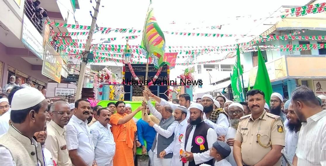 ಉದಯವಾಹಿನಿ ಮಸ್ಕಿ: ಮುಸ್ಲಿಂ ಧರ್ಮಗುರು ಪ್ರವಾದಿ ಮಹಮ್ಮದ್ ಪೈಗಂಬರ್ ಅವರ ಜನ್ಮ ದಿನದ ನಿಮಿತ್ಯ ಇಲ್ಲಿನ ಮುಸ್ಲಿಂ ಬಾಂಧವರು ಸಡಗರ ಸಂಭ್ರಮದಿAದ ಈದ್ ಮಿಲಾದ್ ಹಬ್ಬವನ್ನು ಆಚರಣೆ ಮಾಡಿದರು. ಪಟ್ಟಣದ ಖಲೀಲ್ ವೃತ್ತದ ಬಳಿ ಮೆಕ್ಕಾ ಮದೀನಾ ಮೆರವಣಿಗೆಯನ್ನು ಗಚ್ಚಿನಮಠದ ವರರುದ್ರಮುನಿ ಶಿವಾಚಾರ್ಯ ಸ್ವಾಮೀಜಿ ಅವರು ಚಾಲನೆ ನೀಡಿದರು. ಪಟ್ಟಣದ ಪ್ರಮುಖ ಬೀದಿಗಳಲ್ಲಿ ಮೆರವಣಿಗೆ ಸಾಗಿ ಹಳೆ ಬಸ್ ನಿಲ್ದಾಣ, ಕನಕವೃತ್ತ, ತೇರಿನಮನೆ, ದೈವದಕಟ್ಟೆ ಮೂಲಕ ಮಸೀದಿಗೆ ತಲುಪಿತು. ಮೆರವಣಿಗೆಯಲ್ಲಿ ಪುಟಾಣಿಗಳು ಕೈಯಲ್ಲಿ ರಾಷ್ಟçದ್ವಜ ಹಾಗೂ ಹಸಿರು ಬಾವೂಟ ಹಿಡಿದು ಘೋಷಣೆಗಳನ್ನು ಮೊಳಗಿಸಿದರು.ಮೆಕ್ಕಾ ಮತ್ತು ಮದೀನಾ ಗುಂಬಜ್ ಮಾದರಿಗಳು ನೋಡುಗರ ಗಮನ ಸೆಳೆದವು, ಯಾವುದೇ ಅಹಿತಕರ ಘಟನೆ ನಡೆಯದಂತೆ ಸಿಪಿಐ ಬಾಲಚಂದ್ರ ಲಕ್ಕಂ, ಪಿಎಸ್ಐ ಸಣ್ಣ ವೀರೇಶ ಹಾಗೂ ಪೊಲೀಸ್ ಸಿಬ್ಬಂದಿ ಬಿಗಿ ಬಂದೋಬಸ್ತ್ ನೀಡಿದರು. ಈ ಸಂದರ್ಭದಲ್ಲಿ ಮಾಜಿ ಶಾಸಕ ಪ್ರತಾಪಗೌಡ ಪಾಟೀಲ, ಮುಸ್ಲಿಂ ಧರ್ಮ ಗುರು ಜಿಲಾನಿ ಖಾಜಿ, ಅಬ್ದುಲ್ ಅಜೀಜ್, ಅಬ್ದುಲ್ ಗನಿಸಾಬ, ಬಸನಗೌಡ ಪೊಲೀಸ್ ಪಾಟೀಲ, ಮಸೂದ್ಪಾಷಾ, ಚಾಂದಪಾಷ ಶೇಡ್ಮಿ, ನೂರ ಅಹ್ಮದ್, ಸದ್ದಾಂ ಮಸ್ಕಿ ಸೇರಿದಂತೆ ಇನ್ನಿತರ ಮುಖಂಡರು ಭಾಗಿಯಾಗಿದ್ದರು,