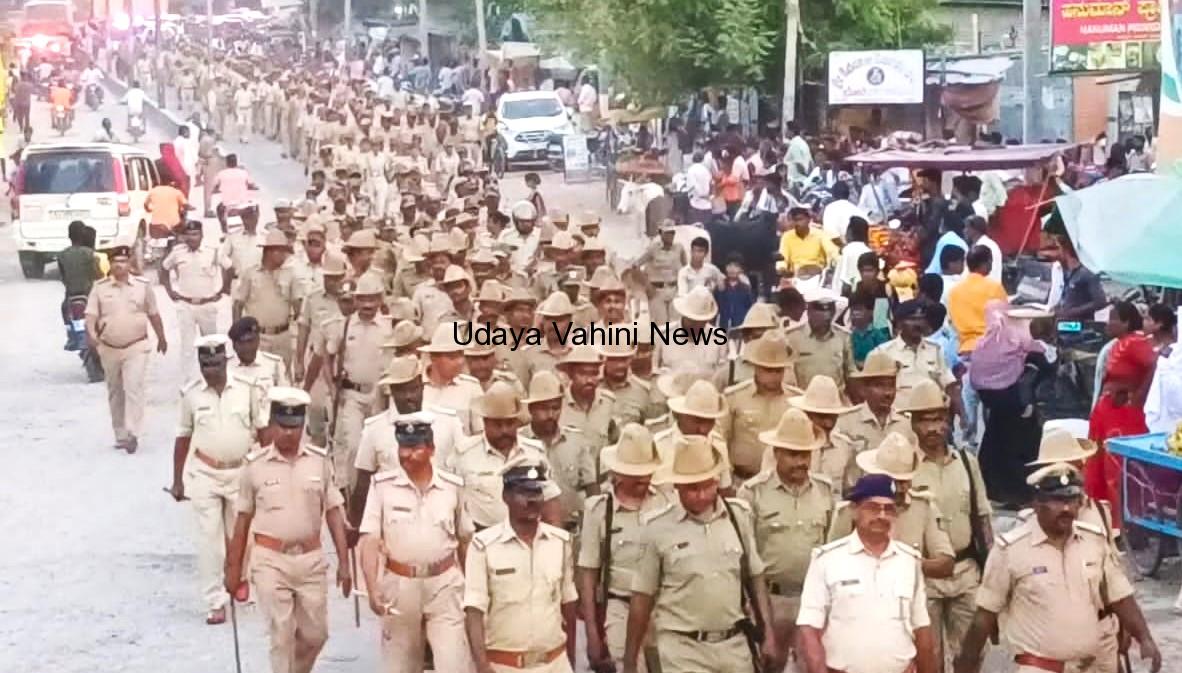 ಉದಯವಾಹಿನಿ ಸಿರುಗುಪ್ಪ : ಈದ್ಮಿಲಾದ್ ಹಬ್ಬದ ಮೆರವಣಿಗೆ ಹಾಗೂ ವಿಶ್ವ ಹಿಂದೂಪರಿಷತ್ ವತಿಯಿಂದ ನಡೆಯುವ ಗಣೇಶ ವಿಸರ್ಜನೆ, ಶೋಭಾಯಾತ್ರೆ ನಿಮಿತ್ತ ಜಿಲ್ಲಾ ಪೋಲೀಸ್ ವರಿಷ್ಠಾಧಿಕಾರಿ ರಂಜೀತ್ಕುಮಾರ್ ಅವರ ನೇತೃತ್ವದಲ್ಲಿ ಬುಧವಾರ ಸಂಜೆ ಪೋಲೀಸ್ ಪಥಸಂಚಲನ ನಡೆಯಿತು.ನಗರದ ತಾಲೂಕು ಕ್ರೀಡಾಂಗಣದಿ0ದ ಶ್ರೀ ಕನಕದಾಸ ವೃತ್ತ, ಶ್ರೀ ಮಹರ್ಷಿ ವಾಲ್ಮೀಕಿ ವೃತ್ತ, ಮಹಾತ್ಮ ಗಾಂಧೀಜಿ ವೃತ್ತ, ಡಾ.ಬಿ.ಆರ್.ಅಂಬೇಡ್ಕರ್ ವೃತ್ತ, ಶ್ರೀ ಅಂಬಿಗರ ಚೌಡಯ್ಯ ವೃತ್ತ, ಕೊಟ್ಟೂರೇಶ್ವರ ದೇವಸ್ಥಾನ, ಟಿಪ್ಪು ಸುಲ್ತಾನ ವೃತ್ತಗಳ ಮೂಲಕ ಪೋಲೀಸ್ ಇಲಾಖೆ ಮತ್ತು ಗೃಹರಕ್ಷಕ ದಳದಿಂದ ಪಥಸಂಚಲನ ಸಾಗಿ ಠಾಣೆಯಲ್ಲಿ ಮುಕ್ತಾಯವಾಗಿತು.ನಂತರ ಎಸ್.ಪಿ ಅವರು ಸುದ್ದಿಗಾರರೊಂದಿಗೆ ಮಾತನಾಡಿ ನಗರದಲ್ಲಿ ಮುಂಜಾಗ್ರತೆಯಾಗಿ ಸೂಕ್ತ ಪೋಲೀಸ್ ಬಂದೋಬಸ್ತ್ ಅಳವಡಿಸಲಾಗಿದೆ.ಸಾರ್ವಜನಿಕರು ಕಿಡಿಗೇಡಿಗಳ ಮಾತಿಗೆ ಕಿವಿಗೊಡದೇ ಸಂಭ್ರಮದಿ0ದ ತಮ್ಮ ತಮ್ಮ ಹಬ್ಬಗಳಲ್ಲಿ ಭಾಗವಹಿಸಿ ಪರಸ್ಪರ ಸಾಮರಸ್ಯದಿಂದ ಹಬ್ಬವನ್ನು ಆಚರಿಸವುದರೊಂದಿಗೆ ಭಾವೈಕ್ಯತೆ ಮೆರೆಯಬೇಕು.ನಮ್ಮ ಸಿಬ್ಬಂದಿಗಳು ನಿರ್ಲಕ್ಷö್ಯವಹಿಸದೇ ನಿಗಾವಹಿಸಿ ಭದ್ರತೆಯ ಕಾರ್ಯ ನಿರ್ವಹಿಸಬೇಕು ಎಂದು ತಿಳಿಸಿದರು.ಇದೇ ವೇಳೆ ಎಎಸ್ಪಿ ಕೆ.ಪಿ.ರವಿಕುಮಾರ್, ಡಿವೈಎಸ್ಪಿ ಎಸ್.ಟಿ.ಒಡೆಯರ್, ಚಂದ್ರಕಾ0ತ ನಂದರೆಡ್ಡಿ, ಸಿಪಿಐ. ಸುಂದ್ರೇಶ್ ಹೊಳೆಣ್ಣನವರ್, ಉಮೇಶ್.ಎಮ್, ಗೋವಿಂದ.ಎ0, ಸತೀಶ್, ಪಿ.ಎಸ್.ಐ ಶಶಿಧರ, ಕಾಳಿಂಗ, ಶಾಂತಮೂರ್ತಿ, ಸದ್ದಾಂಹುಸೇನ್, ಸಂತೋಷ ಹಾಗೂ ಪೋಲೀಸ್ ಮತ್ತು ಗೃಹ ರಕ್ಷಕದಳದ ಸಿಬ್ಬಂದಿಗಳು ಇದ್ದರು.