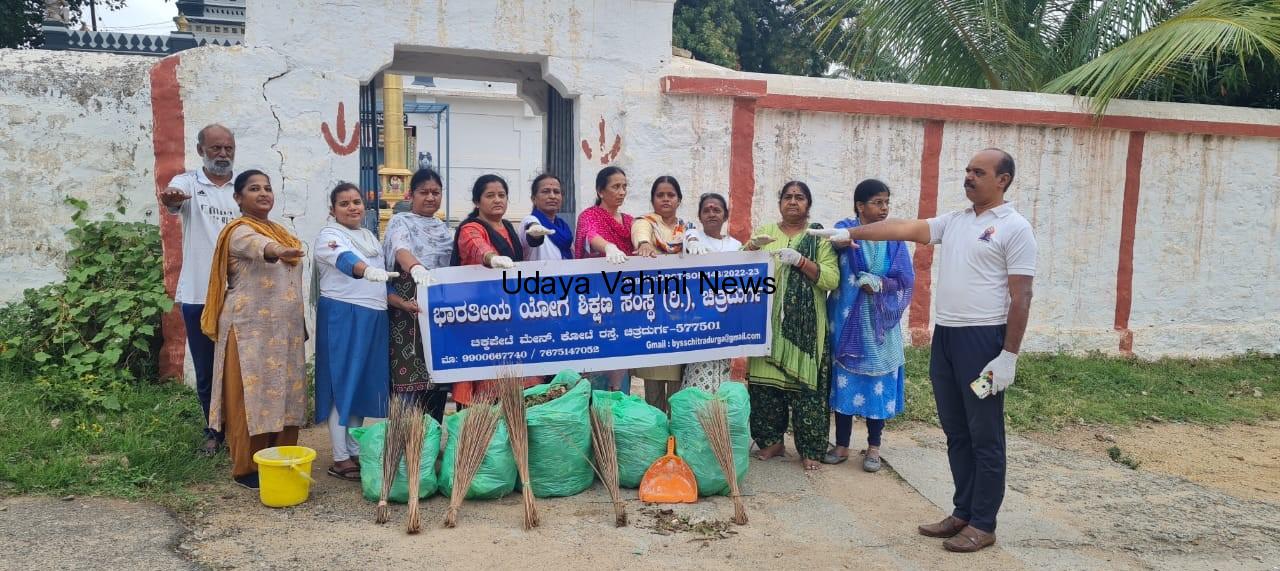 ಮಹಾತ್ಮ ಗಾಂಧೀಜಿಯವರ 154ನೇ ಜನ್ಮದಿನದ ಅಂಗವಾಗಿ ಸೋಮವಾರ ಚಿತ್ರದುರ್ಗದ ಭಾರತೀಯ ಯೋಗ ಶಿಕ್ಷಣ ಸಂಸ್ಥೆಯ ಸದಸ್ಯರು ಬ್ಯಾಂಕ್ ಕಾಲೋನಿ ನಾಗರೀಕರ ಸಹಯೋಗದೊಂದಿಗೆ ನಗರದ ತುರುವನೂರು ರಸ್ತೆಯ ಶ್ರೀ ವೆಂಕಟೇಶ್ವರ ಸ್ವಾಮಿ ದೇವಾಲಯದ ಪ್ರಾಂಗಣ ಹಾಗೂ ಸುತ್ತಮುತ್ತಲಿನ ಪ್ರದೇಶದಲ್ಲಿ ಹಮ್ಮಿಕೊಂಡಿದ್ದ ಸ್ವಚ್ಛತಾ ಕಾರ್ಯಕ್ರಮದಲ್ಲಿ ಸ್ವಚ್ಚತಾ ಹೀ ಸೇವ ಅಭಿಯಾನದ ಪ್ರತಿಜ್ಞಾ ವಿಧಿಯನ್ನು ಬೋಧಿಸಿ ಅವರು ಮಾತನಾಡಿದರು. ಮಹಾತ್ಮಾ ಗಾಂಧೀಜಿಯವರು ತಮ್ಮ ಸುತ್ತಮುತ್ತಲಿನ ಜನರಿಗೆ ಸ್ವಚ್ಛತೆ ಕಾಪಾಡುವ ಬಗ್ಗೆ ಶಿಕ್ಷಣ ನೀಡುವ ಮೂಲಕ ರಾಷ್ಟ್ರಕ್ಕೆ ಅತ್ಯುತ್ತಮ ಸಂದೇಶವನ್ನು ನೀಡಿದರು. ಆ ಮೂಲಕ ಅವರು”ಸ್ವಚ್ಛ ಭಾರತ” ದ ಕನಸು ಕಂಡಿದ್ದರು, ಅವರ ಅಂದಿನ ಕನಸನ್ನು ನನಸು ಮಾಡುವ ಸಲುವಾಗಿ ಇಂದಿನ ನಮ್ಮ ಹೆಮ್ಮೆಯ ಪ್ರಧಾನ ಮಂತ್ರಿಗಳಾದ ನರೇಂದ್ರ ಮೋದಿಯವರು ಸ್ವಚ್ಛತೆಯೇ ಸೇವೆ ಎಂಬ ಅಭಿಯಾನವನ್ನು ಹಮ್ಮಿಕೊಂಡಿದ್ದಾರೆ ಅದಕ್ಕೆ ನಾವೆಲ್ಲರೂ ಕೈಜೋಡಿಸಬೇಕಾಗಿದೆ ದೇಶದ ಗಡಿ ಕಾಯುವ ಯೋಧರು ನಮ್ಮನ್ನು ಶತ್ರುಗಳಿಂದ ರಕ್ಷಿಸಿದಂತೆ ದೇಶದ ಒಳಗಡೆ ನಮ್ಮ ಸ್ವಚ್ಚತಾ ಕರ್ಮಿಗಳು ಪ್ರತಿದಿನ ಸಾವಿರಾರು ಕೀಟಾಣುಗಳಿಂದ ಹರಡಬಹುದಾದ ರೋಗಗಳಿಂದ ನಮ್ಮನ್ನು ಕಾಪಾಡಲು ಪ್ರತಿದಿನ ಹೋರಾಡುತ್ತಾರೆ ಅದಕ್ಕಾಗಿ ಸ್ವಚ್ಚತಾ ಕರ್ಮಿಗಳನ್ನು ಸೈನಿಕರಂತೆ ಗೌರವದಿಂದ ಕಾಣಬೇಕು” ಎಂದು ತಿಳಿಸಿದರು. ಯೋಗ ಸಂಸ್ಥೆಯ ಸದಸ್ಯರು ವೆಂಕಟೇಶ್ವರ ದೇವಾಲಯ ಆವರಣವನ್ನು ಸ್ವಚ್ಚಗೊಳಿಸುವುದರ ಜೊತೆಗೆ ದೇವಾಲಯದ ಸುತ್ತಲಿನ ಪ್ಲಾಸ್ಟಿಕ್ ಕವರುಗಳು ಹಾಗೂ ಇನ್ನಿತರ ತ್ಯಾಜ್ಯವನ್ನು ಸಂಗ್ರಹಿಸಿ ಹತ್ತಿರದ ಕಸದ ತೊಟ್ಟಿಗೆ ಹಾಕಿದರು.ಸ್ವಚ್ಚತಾ ಕಾರ್ಯದಲ್ಲಿ ಯೋಗ ಸಾಧಕರಾದ ವನಜಾಕ್ಷಮ್ಮ, ಅಂಬುಜಾ, ಭಾಗ್ಯ, ಮೀನಾಕ್ಷಿ, ರೇಣುಕಾ, ರೂಪ, ಮೂಸ್ಟುಟರಮ್ಮ, ಕುಮುದ, ಹೇಮಲತಾ, ಅನುಸೂಯ. ರಮಾ, ಶೀಲಾ, ಚಿತ್ರಾ, ಡಾ. ಲತಾ.