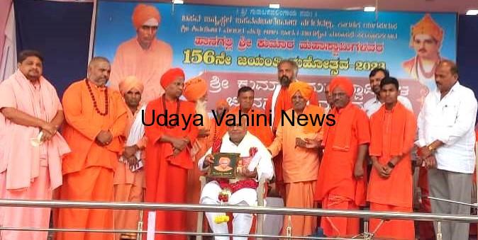 ಉದಯವಾಹಿನಿ ಬಸವನಬಾಗೇವಾಡಿ: ಗುರು ವಿರಕ್ತರನ್ನು ಬೇಸುಗೆ ಮಾಡಿದ ಕುಮಾರ ಸ್ವಾಮೀಜಿಯವರ ಕುರಿತು 1೦ ದಿನಗಳ ವರೆಗೆ ಪ್ರವಚನ ಮೂಲಕ ಅವರ ಜೀವನ ಸಾಧನೆಗಳನ್ನು ತಿಳಿಸುವ ಕಾರ್ಯ ಪಟ್ಟಣದಲ್ಲಿ ನಡೆಸುವ ಮೂಲಕ ಹೆಚ್ಚಿನ ಸಂಖ್ಯೆಯ ಜನರು ಧಾರ್ಮಿಕ ಕಾರ್ಯದಲ್ಲಿ ತೊಡಗುವಂತೆ ಜಯಂತ್ಯೋತ್ಸವ ಸಮಿತಿಯವರು ಮಾಡಿರುವ ಕಾರ್ಯ ಶ್ಲಾಘನೀಯವಾಗಿದೆ ಎಂದು ಜವಳಿ, ಸಕ್ಕರೆ, ಕೃಷಿ ಮಾರುಕಟ್ಟೆ ಸಚಿವ ಶಿವಾನಂದ ಪಾಟೀಲ ಹೇಳಿದರು. ಪಟ್ಟಣದ ಬಸವೇಶ್ವರ ದೇವಾಲಯದ ಅಂತರಾಷ್ಟಿಯ ಶಾಲೆಯ ಆವರಣದಲ್ಲಿ ಬುಧವಾರ ಹಮ್ಮಿಕೊಂಡಿದ್ದ ಹಾನಗಲ್ಲ ಕುಮಾರ ಸ್ವಾಮೀಜಿ ಅವರ 165ನೇ ಜಯಂತ್ಯೋತ್ಸವ ಕಾರ್ಯಕ್ರಮದ ಅಧ್ಯಕ್ಷತೆ ವಹಿಸಿದ್ದ ಮಾತನಾಡಿದರು.ಮಹಿಳೆಯಿಂದ ಮನೆಯಲ್ಲಿ ಉತ್ತಮ ಸಂಸ್ಕಾರ ಬೆಳೆಯುತ್ತವೆ. ಸಂಸ್ಕಾರ ಪಡೆದ ಮಕ್ಕಳ ಸಮಾಜಮುಖಿ ಕಾರ್ಯದಲ್ಲಿ ತೊಡಗಿಕೊಳ್ಳುತ್ತಾರೆ. ಮುಂಬರುವ ದಿನಗಳಲ್ಲಿ ಪಟ್ಟಣವು ಧಾರ್ಮಿಕ ಕಾರ್ಯಕ್ರಮದ ಮೂಲಕ ಮೂಲಕ ಗುರುತಿಸಿಕೊಳ್ಳಲಿದೆ ಎಂದು ಹೇಳಿದರು.