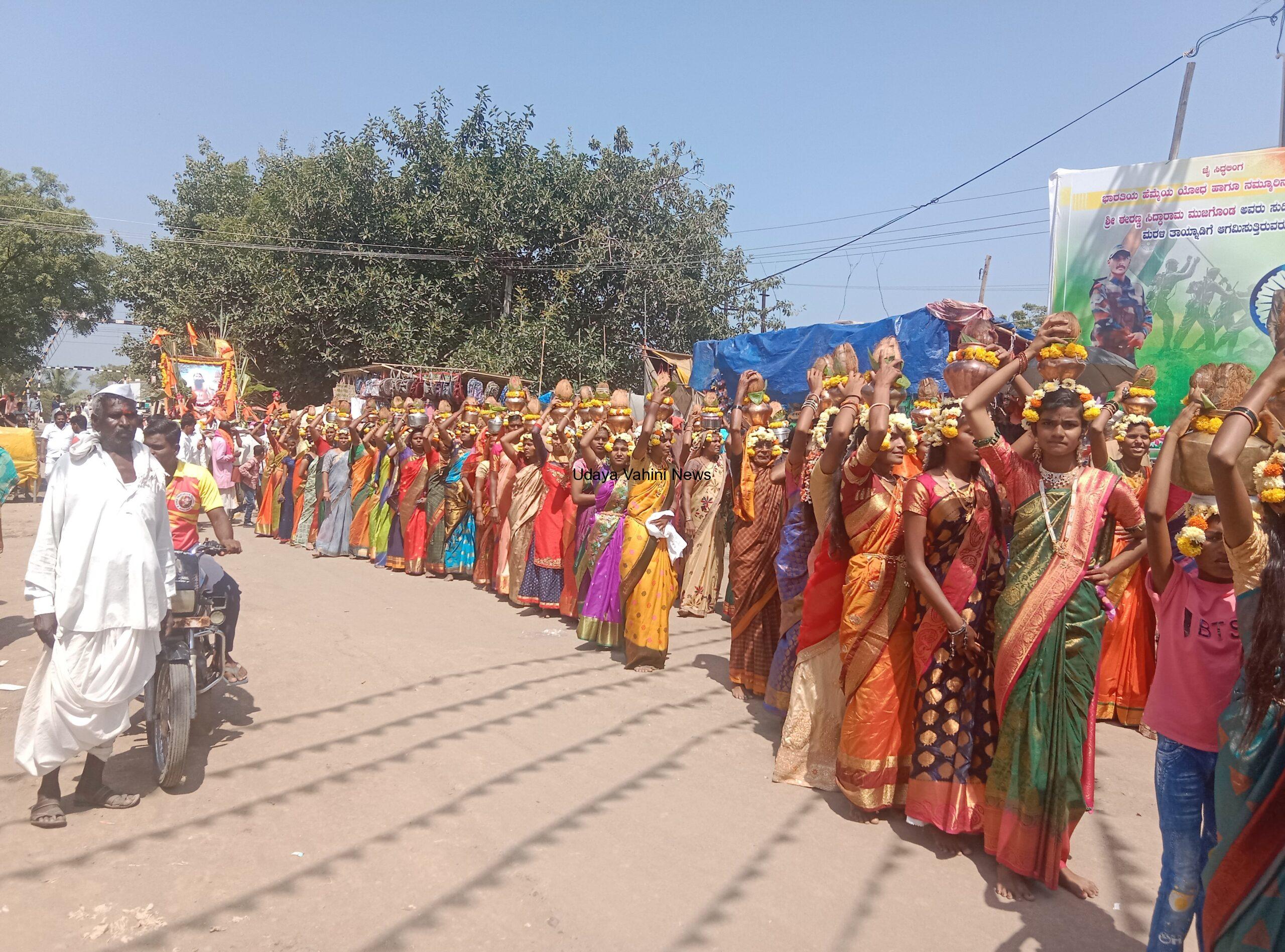 ಉದಯವಾಹಿನಿ,ಇಂಡಿ: ತಾಲೂಕಿನ ಲಚ್ಯಾಣ ಗ್ರಾಮದಲ್ಲಿ ಶ್ರೀ ಸಿದ್ಧಲಿಂಗ ಮಹಾರಾಜರ 96 ನೇ ಪುಣ್ಯಸ್ಮರಣೆಯ ಅಂಗವಾಗಿ ಶುಕ್ರವಾರ 151 ಕುಂಭ ಮೇಳದೊಂದಿಗೆ ಎತ್ತಿನ ಬಂಡಿಯಲ್ಲಿ ಶ್ರೀ ಸಿದ್ಧಲಿಂಗ ಮಹಾರಾಜರ ಭಾವಚಿತ್ರದ ಭವ್ಯ ಮೆರವಣ ಗೆ ನಡೆಯಿತು.ಬಂಥನಾಳದ ಶ್ರೀ ವೃಷಭಲಿಂಗ ಮಹಾಶಿವಯೋಗಿಗಳ ಸಾನಿಧ್ಯದಲ್ಲಿ ಇಲ್ಲಿನ ಕಮರಿಮಠದಿಂದ ಆರಂಭವಾದ ಈ ಭವ್ಯ ಮೆರವಣ ಗೆಗೆ ಹೂವಿನ ಹಿಪ್ಪರಗಿಯ ಪತ್ರಿವನ ಮಠದ ದ್ರಾಕ್ಷಾಯಣ ಅಮ್ಮನವರು ಚಾಲನೆ ನೀಡಿದರು.ಬಳಿಕ ಈ ಮೆರವಣ ಗೆಯು ಭಕ್ತರ ಜಯಘೋಷಗಳ ನಡುವೆ ವಿಬೃಂಭಣೆಯಿoದ ಪುರ ಪ್ರವೇಶಗೊಂಡಿತು. ಈ ಮೆರವಣ ಗೆಯಲ್ಲಿ ಪಾಲ್ಗೊಂಡ ಮಹಿಳೆಯರು ಪೂರ್ಣಕುಂಭ ಹೊತ್ತು, ಓಂ ನಮ: ಶಿವಾಯ ನಮ: ಎಂಬ ಮಂತ್ರ ಪಠಣದೊಂದಿಗೆ ಹೆಜ್ಜೆ ಹಾಕಿದರು.