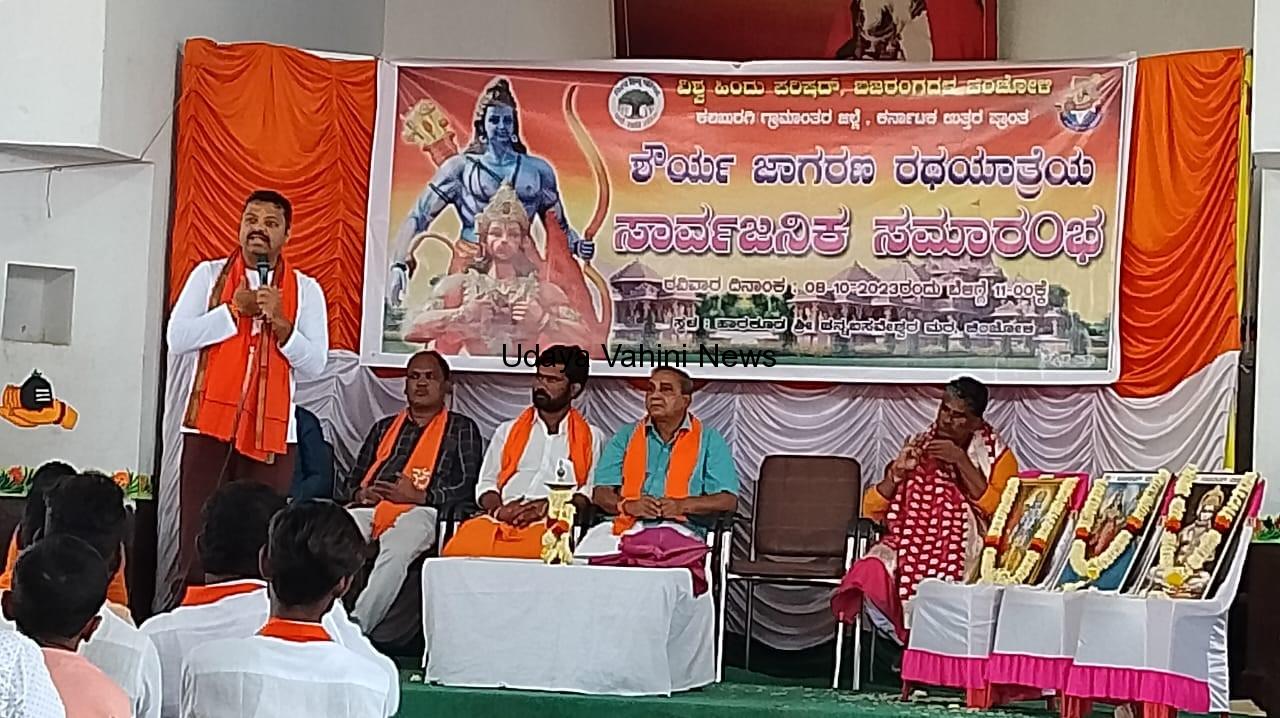 ಉದಯವಾಹಿನಿ,ಚಿಂಚೋಳಿ: ರಾಷ್ಟ್ರದ ಇಂದಿನ ಯುವಕರು ಯಾವುದೇ ದುಶ್ಚಟಗಳಿಗೆ ಬಲಿಯಾಗದೆ ರಾಷ್ಟ್ರಭಕ್ತಿಯ ಬಗ್ಗೆ ಚಿಂತನೆಯನ್ನು ಮೈಗೂಡಿಸಿಕೊಳ್ಳಬೇಕು ಎಂದು ಯುವ ಬ್ರಿಗೇಡ್ ಸಂಘಟನೆಯ ಸಂಸ್ಥಾಪಕ ಚಕ್ರವರ್ತಿ ಸೂಲಿಬೆಲೆ ಹೇಳಿದರು.ತಾಲ್ಲೂಕಿನ ಹಾರಕೂಡ ಚನ್ನಬಸವೇಶ್ವರ ಕಲ್ಯಾಣ ಮಂಟಪದಲ್ಲಿ ವಿಶ್ವ ಹಿಂದು ಪರಿಷದ್,ಬಜರಂಗದಳ ವತಿಯಿಂದ ಹಮ್ಮಿಕೊಂಡಿದ್ದ ಶೌರ್ಯ ಜಾಗರಣಾ ರಥಯಾತ್ರೆಯ ಶೋಭಯಾತ್ರೆ ಹಾಗೂ ಸಾರ್ವಜನಿಕ ಸಮಾರಂಭವನ್ನು ಉದ್ಘಾಟಿಸಿ ಮಾತನಾಡಿದ ಅವರು,ಹಿರಿಯ ನಾಗರಿಕರು ಮಕ್ಕಳಿಗೆ ಹಿಂದು ಧರ್ಮದ ಕುರಿತು ಜಾಗೃತಿ ಮೂಡಿಸಬೇಕು.ಯುವತಿಯರು ಯಾವುದೇ ತಪ್ಪು ಮಾಡದ ಹಾಗೆ ಹಿಂದು ಧರ್ಮದ ಬಗ್ಗೆ ವಿಸ್ತಾರವಾಗಿ ತಿಳಿಸಬೇಕು,ಯುವಕರು ದುಶ್ಚಟಗಳಿಗೆ ಬಲಿಯಾಗದೆ ಹಿಂದು ಧರ್ಮದ ಚಿಂಚನೆ ಮಾಡಿ ರಾಷ್ಟ್ರದ ಬಗ್ಗೆ ಹೆಚ್ಚಿನ ಮಾಹಿತಿ ಪಡೆದು ರಾಷ್ಟ್ರ ವಿರೋಧಿ,ಧರ್ಮ ವಿರೋಧಿ ಶಕ್ತಿಗಳಿಗೆ ತಡೆಗಟ್ಟುವ ಕೆಲಸ ಯುವಕರು ಮಾಡಬೇಕು.