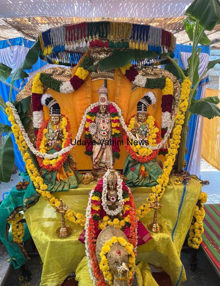 ಉದಯವಾಹಿನಿ ದೇವದುರ್ಗ:- ತಾಲೂಕಿನ ಗಬ್ಬೂರು ಗ್ರಾಮದಲ್ಲಿ ಬರುವ ಶ್ರೀ ಲಕ್ಷ್ಮೀ ವೆಂಕಟೇಶ್ವರ ದೇವಾಲಯದಲ್ಲಿ ನವರಾತ್ರಿಯ ದಿನವಾದ ಗುರುವಾರ ಶ್ರೀ ಲಕ್ಷ್ಮೀ ವೆಂಕಟೇಶ್ವರ ಕಲ್ಯಾಣ ಮಹೋತ್ಸವ ಅದ್ದೂರಿಯಾಗಿ ನಡೆಯಿತು.ನವರಾತ್ರಿ ಉತ್ಸವ ಪ್ರಯುಕ್ತ ಕಳೆದ ನಾಲ್ಕು ದಿನಗಳಿಂದ ದೇವಸ್ಥಾನದಲ್ಲಿ ವಿವಿಧ ಪೂಜೆ ಕಾರ್ಯಕ್ರಮಗಳು ನಡೆಯುತ್ತಿದ್ದು, ಸಾವಿರಾರು ಭಕ್ತರು ಆಗಮಿಸಿ ದೇವರ ದರ್ಶನ ಪಡೆಯುತ್ತಿದ್ದಾರೆ.ಕಲ್ಯಾಣ ಮಹೋತ್ಸವ ಪ್ರಯುಕ್ತ ದೇವಸ್ಥಾನದಲ್ಲಿ ಅರ್ಚಕರಾದ ಶ್ರೀ ನಿವಾಸ ಅವರ ನೇತೃತ್ವದಲ್ಲಿ ಪೂಜಾ ಕಾರ್ಯಕ್ರಮಗಳು ನಡೆದವು. ಮುಖ್ಯ ಅರ್ಚಕರಾದ ರಾಘವೇಂದ್ರಾಚಾರ್ಯ ಗುಡಿ, ವೆಂಕಟೇಶಾಚಾರ್ಯ ಗುಡಿ ಹಾಗೂ ಕುಟುಂಬದ ಸದಸ್ಯರು ಮತ್ತು ಸಾವಿರಾರು ಜನ ಭಕ್ತರು ಇದ್ದರು.