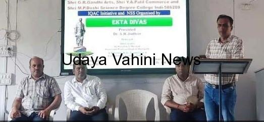 ರಾಷ್ಟ್ರೀಯ ಏಕತಾ ದಿನಾಚರಣೆಯ ನಿಮಿತ್ಯ ಮಹಾವಿದ್ಯಲಯದಲ್ಲಿ ಸದರ್ಾರ ವಲ್ಲಭಭಾಯಿ ಪಟೇಲರ ಜೀವನ & ವ್ಯಕ್ತಿತ್ವ ವಿಷಯದ ಕುರಿತು ಪ್ರಬಂಧ ಸ್ಪರ್ಧೆ ಏರ್ಪಡಿಸಲಾಗಿತ್ತು. ಡಾ ಪಿ.ಕೆ. ರಾಠೋಡ ನಿರೂಪಿಸಿದರು. ಡಾ. ಜಯಪ್ರಸಾದ ಡಿ ಸ್ವಾಗತಿಸಿದರು.ಇಂಡಿ ಪಟ್ಟಣದ ಜಿಆರ್ಜಿ ಕಲಾ ಮಹಾವಿದ್ಯಾಲಯದ ಸಭಾ ಭವನದಲ್ಲಿ ಮಂಗಳವಾರ ಏರ್ಪಡಿಸಿದ್ದ ಏಕತಾ ದಿನಾಚರಣೆಯಲ್ಲಿ ಪ್ರಾಧ್ಯಾಪಕ ಡಾ. ನಾಗರಾಜ ಮುರಗೋಡ ಮಾತನಾಡಿದರು.