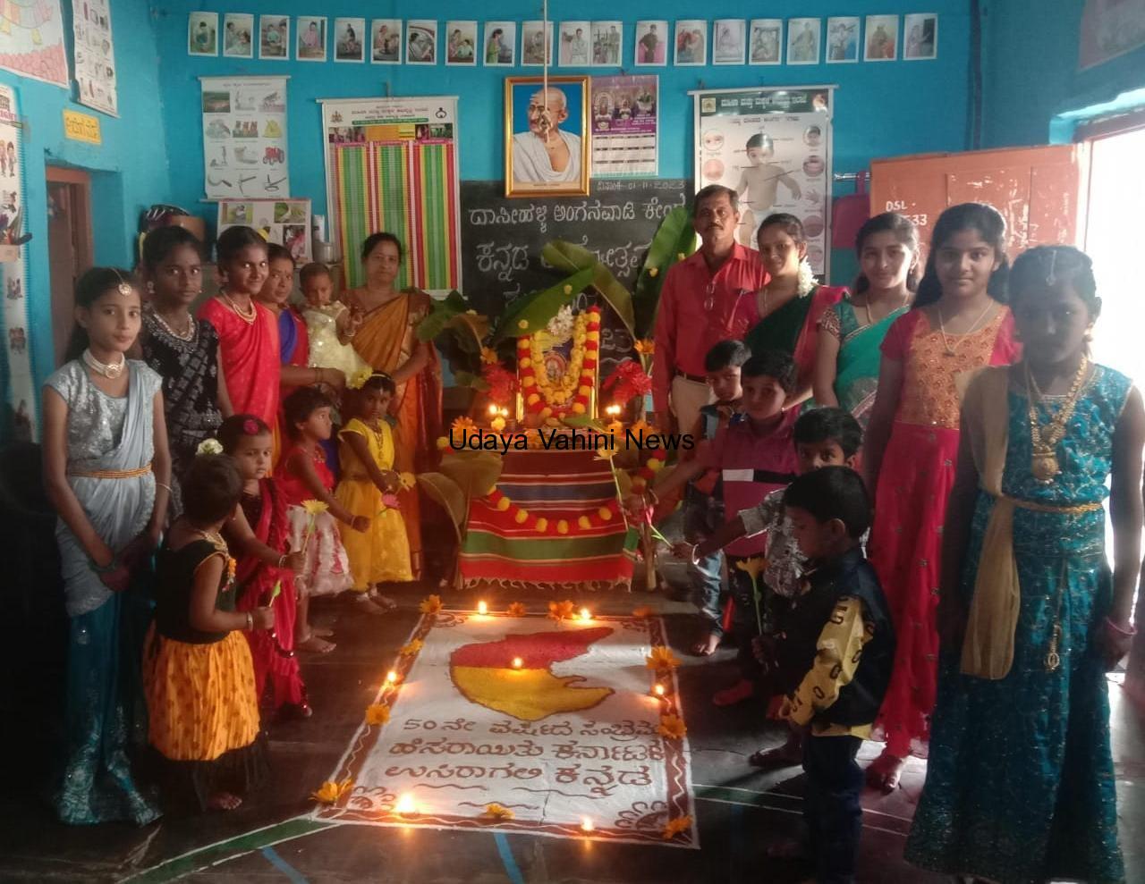 ಅರಸೀಕೆರೆ ತಾಲ್ಲೂಕಿನ ದುಮ್ಮೇನಹಳ್ಳಿ ಗ್ರಾಮ ಪಂಚಾಯತಿ ವ್ಯಾಪ್ತಿಯ ದಾಸೀಹಳ್ಳಿ ಅಂಗನವಾಡಿ ಕೇಂದ್ರದಲ್ಲಿ ಬಹಳ ವಿಜೃಂಭಣೆಯಿಂದ ಅಂಗನವಾಡಿ ಕೇಂದ್ರವನ್ನು ಸಿಂಗರಿಸಿ ದೀಪಾ ಹಚ್ಚಿ ರಂಗೋಲಿ ಬಿಡಿಸುವುದರ ಮೂಲಕ ವಿಶಿಷ್ಟವಾಗಿ ಕನ್ನಡ ರಾಜ್ಯೋತ್ಸವವನ್ನು ಆಚರಿಸಿ ಸಾರ್ವಜನಿಕರ ಗಮನ ಸೆಳೆದರು… ಶಿಶು ಅಭಿವೃದ್ಧಿ ಯೋಜನಾಧಿಕಾರಿಗಳಾದ ಶ್ರೀಯುತ ಟಿ.ಜೆ.ಶಂಕರಮೂರ್ತಿ ಸರ್ ರವರ ಹಾಗೂ ಮೇಲ್ವಿಚಾರಕರಾದ ಶ್ರೀಮತಿ ಪುಷ್ಬಾವತಿ ಮೇಡಂ ರವರ ಆದೇಶದ ಮೇರೆಗೆ ಕನ್ನಡ ರಾಜ್ಯೋತ್ಸವವನ್ನು ಅದ್ದೂರಿಯಾಗಿ ಆಚರಣೆ ಮಾಡಲಾಯಿತು ಕಾರ್ಯಕ್ರಮದಲ್ಲಿ ಅಂಗನವಾಡಿ ಕಾರ್ಯಕರ್ತೆಯಾದ ಅಂಜಲಿ.ಡಿ.ವಿ ಹಾಗೂ ಸಹಾಯಕಿಯವರಾದ ವನಿತಾ ಹಾಗೂ ಶಾಲೆಯ ಮುಖ್ಯ ಶಿಕ್ಷಕರಾದ ಶ್ರೀಮತಿ ಇಂದ್ರಾಣಿ ಮೇಡಂರವರು ಮತ್ತು ಶ್ರೀಯುತ ಶಶಿಧರ್ ಮೂರ್ತಿ ಸರ್ ರವರು ಹಾಜರಿದ್ದು ಕಾರ್ಯಕ್ರಮ ಯಶಸ್ವಿಗೊಳಿಸಿದರು ಮತ್ತು ಈ ಸಂಭ್ರಮಾಚರಣೆಯಲ್ಲಿ ಅಂಗನವಾಡಿ ಕೇಂದ್ರದ ಮಕ್ಕಳು. ಕಿಶೋರಿಯರು. ಗ್ರಾಮಸ್ಥರು. ಹಾಜರಿದ್ದು ಕಾರ್ಯಕ್ರಮಕ್ಕೆ ಇನ್ನಷ್ಟು ಮೇರಗು ತಂದಿತು ಎಲ್ಲರಿಗೂ ಸಿಹಿ ಹಂಚಿ ದೀಪ ಬೇಳಗಿಸಿ ಕರ್ನಾಟಕಕ್ಕೆ 50 ರ ಸಂಭ್ರಮಾಚರಣೆ ಸಂಭ್ರಮಿಸಲಾಯಿತು
