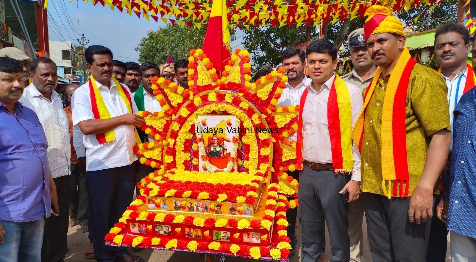 ಉದಯವಾಹಿನಿ ಶಿಡ್ಲಘಟ್ಟ: ದೇಶ ವಿದೇಶಗಳಲ್ಲಿ ವಾಸಿಸುವ ನಮ್ಮ ಕರ್ನಾಟಕದ ಜನತೆ ಇಂದು ಕನ್ನಡ ರಾಜ್ಯೋತ್ಸವವನ್ನು ಆಚರಣೆ ಮಾಡುತ್ತಿರುವುದು ನಮ್ಮ ನಿಮ್ಮಲ್ಲರ ಹೆಮ್ಮೆ ಎಂದು ಶಾಸಕ ರವಿಕುಮಾರ್ ತಿಳಿಸಿದರು.ನಗರದ ತಾಲ್ಲೂಕು ಕಛೇರಿಯಲ್ಲಿ ಹಾಗೂ ಬಸ್ ನಿಲ್ದಾಣದ ಶ್ರೀ ಸಲ್ಲಾಪುರಮ್ಮ ದೇವಸ್ಥಾನದ ಮುಂಭಾಗ ರಾಷ್ಟ್ರೀಯ ಹಬ್ಬಗಳ ಆಚರಣಾ ಸಮಿತಿ, ತಾಲ್ಲೂಕು ಆಡಳಿತ, ತಾಲ್ಲೂಕು ಪಂಚಾಯತಿ, ಕನ್ನಡಪರ ಸಂಘಟನೆಗಳಿಂದ 68ನೇ ಕನ್ನಡ ರಾಜ್ಯೋತ್ಸವದ ಪ್ರಯುಕ್ತ ಧ್ವಜಾರೋಹಣ ನೆರವೇರಿಸಿ ಮಾತನಾಡಿದರು.ಮೈಸೂರು ರಾಜ್ಯಕ್ಕೆ “ಕರ್ನಾಟಕ” ಎಂದು ನಾಮಕರಣವಾಗಿ 50 ವರ್ಷಗಳು ಪೂರ್ಣಗೊಂಡಿರುವ ಹಿನ್ನೆಲೆ ಈ ವರ್ಷ ವಿಶೇಷ ರೀತಿಯಲ್ಲಿ ಶಿಡ್ಲಘಟ್ಟ ಕ್ಷೇತ್ರದಲ್ಲಿ ಕನ್ನಡ ರಾಜ್ಯೋತ್ಸವ ಆಚರಣೆ ಮಾಡುತ್ತಿದ್ದು ಆ ಭುವನೇಶ್ವರಿ ದೇವಿ ಸಮಸ್ತ ಜನತೆಗೆ ಆರೋಗ್ಯ ಜೊತೆಗೆ ಮಳೆ, ಬೆಳೆಯಾಗಿ ನಾಡು ಸುಬೀಕ್ಷೆಯಿಂದಿರಲು ಆ ತಾಯಿ ಭವನೇಶ್ವರಿ ಕಾಪಾಡಲಿ ಎಂದರು.ಭುವನೇಶ್ವರಿ ತಾಯಿ ಚಿತ್ರಪಟಕ್ಕೆ ಪುಷ್ಪ ನಮನ ಸಲ್ಲಿಸಿದರು. ತಾಲ್ಲೂಕಿನ ಪಂಚಾಯಿತಿಗಳಿಂದ ಪಲ್ಲಕ್ಕಿಗಳೊಂದಿಗೆ ನಗರದ ವಿವಿಧ ರಸ್ತೆಗಳಲ್ಲಿ ಮೆರವಣಿಗೆ ಮಾಡಲಾಯಿತು. ಸಂದರ್ಭದಲ್ಲಿ ತಹಶಿಲ್ದಾರ್ ಬಿ.ಎನ್.ಸ್ವಾಮಿ, ಕಾರ್ಯನಿರ್ವಹಣಾಧಿಕಾರಿ ಜಿ.ಮುನಿರಾಜು, ಆರಕ್ಷಕ ವೃತ್ತ ನಿರೀಕ್ಷಕ ಎಂ.ಶ್ರೀನಿವಾಸ್, ಆರೋಗ್ಯಾಧಿಕಾರಿ ಡಾ.ವೆಂಕಟೇಶ್ ಮೂರ್ತಿ, ಬಿ.ಇ.ಓ ನರೇಂದ್ರಕುಮಾರ್,ತಾಲ್ಲೂಕು ಕಸಾಪ ಅಧ್ಯಕ್ಷ ಅನಂತಕೃಷ್ಣ, ಪಿ ಎಲ್ ಡಿ ಬ್ಯಾಂಕ್ ಅಧ್ಯಕ್ಷ ನಾರಾಯಣಸ್ವಾಮಿ, ಮತ್ತಿತರರು ಹಾಜರಿದ್ದರು.