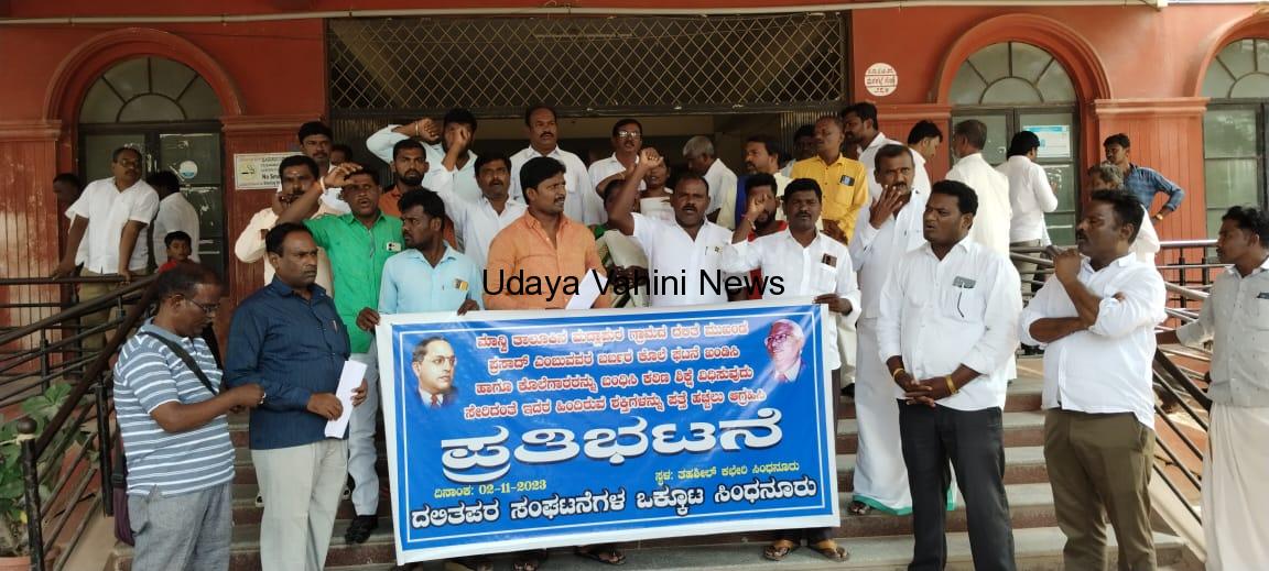 ಉದಯವಾಹಿನಿ, ಸಿಂಧನೂರು:ರಾಯಚೂರು ಜಿಲ್ಲೆ ಮಾನ್ವಿ ತಾಲೂಕಿನ ಮದ್ಲಾಪುರ ಗ್ರಾಮದ ದಲಿತ ಮುಖಂಡ ಪ್ರಸಾದ್ ಅವರನ್ನು ಮಾರಕಾಸ್ತ್ರಗಳಿಂದ ಬರ್ಬರವಾಗಿ ಹತ್ಯೆ ಮಾಡಿದವರನ್ನು ಬಂಧಿಸಿ ಕಠಿಣ ಶಿಕ್ಷೆ ವಿಧಿಸಬೇಕೆಂದು ಮತ್ತು ದಲಿತ ಸಮುದಾಯದವರ ಮೇಲೆ ಹೆಚ್ಚುತ್ತಿರುವ ದೌರ್ಜನ್ಯ, ದಬ್ಬಾಳಿಕೆ, ಕೊಲೆಯಂತ ದುಷ್ಕೃತ್ಯಗಳ ಕಡಿವಾಣಕ್ಕೆ ಕಠಿಣ ಕಾನೂನು ಕ್ರಮಗಳನ್ನು ಜಾರಿ ಮಾಡಲು ಆಗ್ರಹ.