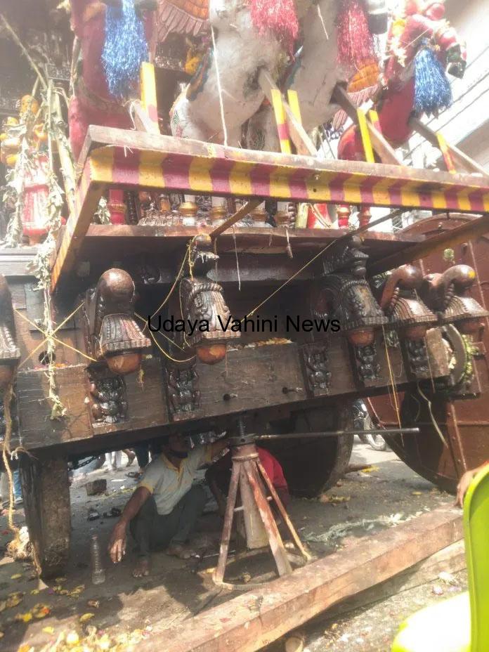 ಇಂದು ದುರಸ್ತಿ ಮಾಡಿ ತೇರನ್ನು ಯತಾ ಸ್ಥಳಕ್ಕೆ ತರುವ ಕಾರ್ಯ ನಡೆಯಿತು.