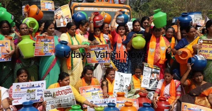 ಉದಯವಾಹಿನಿ, ಬೆಂಗಳೂರು: ರಾಜ್ಯದಲ್ಲಿ ಭೀಕರ ಬರಗಾಲ ಆವರಿಸಿದ್ದರೂ ಆಡಳಿತಾರೂಢ ಕಾಂಗ್ರೆಸ್ ಸರ್ಕಾರ ಸಮಪರ್ಕವಾಗಿ ನಿರ್ವಹಣೆ ಮಾಡಿಲ್ಲ ಎಂದು ಪ್ರತಿಪಕ್ಷ ಬಿಜೆಪಿ, ನೀರಿಲ್ಲ ನೀರಿಲ್ಲ ಎಂದು ಹೇಳುವ ಮೂಲಕ ವಿನೂತನವಾಗಿ ಪ್ರತಿಭಟನೆ ನಡೆಸಿತು.