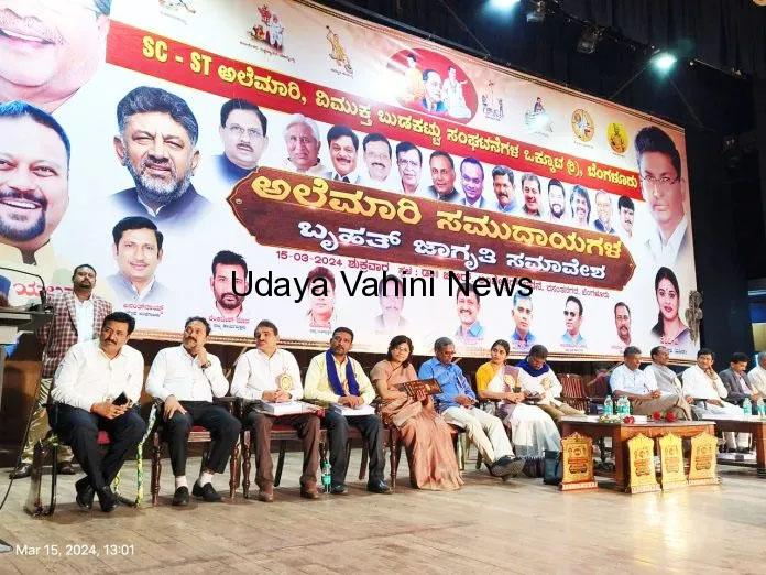 ಉದಯವಾಹಿನಿ, ಬೆಂಗಳೂರು: ನಗರದ ಬಿ.ಆರ್. ಅಂಬೇಡ್ಕರ್ ಭವನದಲ್ಲಿ ಆಯೋಜಿಸಲಾದ ಕರ್ನಾಟಕ ಎಸ್ಸಿ, ಎಸ್ಟಿ ಅಲೆಮಾರಿ, ವಿಮುಕ್ತ ಬುಡಕಟ್ಟು ಸಂಘಟನೆಗಳ ಒಕ್ಕೂಟದಿಂದ ಇದೇ ಮೊದಲ ಬಾರಿಗೆ ಆಯೋಜಿಸಲಾದ ಅಲೆಮಾರಿ ಸಮುದಾಯಗಳ “ರಾಜ್ಯ ಮಟ್ಟದ ಬೃಹತ್ ಜಾಗೃತಿ ಸಮಾವೇಶ”ವನ್ನು ಉದ್ಘಾಟಿಸಿ ಮಾತನಾಡಿ, ಸರ್ಕಾರ ಶೋಷಿತ ಸಮುದಾಯಗಳ ಅಭಿವೃದ್ಧಿಗೆ ಸದಾ ಶ್ರಮಿಸುತ್ತದೆ. ಸರ್ಕಾರದ ಗ್ಯಾರೆಂಟಿ ಮತ್ತು ಜನಪರ ಯೋಜನೆಗಳನ್ನು ಶೋಷಿತ ಸಮುದಾಯ ಸದ್ಭಳಕೆ ಮಾಡಿಕೊಳ್ಳಬೇಕು ಎಂದರು.