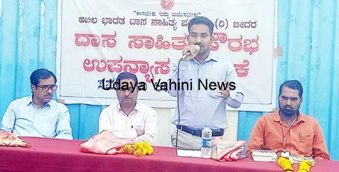 ಉದಯವಾಹಿನಿ, ಬೀದರ : ಕನ್ನಡ ಸಾಹಿತ್ಯದ ಶರಣ ಮತ್ತು ಹರಿದಾಸ ಸಾಹಿತ್ಯಗಳು ಅಪೂರ್ವ ಭಾಗಗಳಾಗಿವೆ. ಇವುಗಳು ಕನ್ನಡ ಸಾಹಿತ್ಯವನ್ನು ಪರಿಪೂರ್ಣ ಮಾಡಿವೆ. ಅಲ್ಲದೆ ಜನಜೀವನ ಸಮೃದ್ಧಿಗೊಳಿಸಿವೆ ಎಂದು ಕರ್ನಾಟಕ ಗಡಿ ಪ್ರದೇಶ ಅಭಿವೃದ್ಧಿ ಪ್ರಾಧಿಕಾರದ ನೂತನ ಸದಸ್ಯ ಡಾ. ಸಂಜೀವಕುಮಾರ ಅತಿವಾಳೆ ನುಡಿದರು.ಅವರು ಅಖಿಲ ಭಾರತ ದಾಸ ಸಾಹಿತ್ಯ ಪರಿಷತ್ತು ಹಾಗೂ ಋಷಿಕೇಶ ಶಿಕ್ಷಣ ಸಂಸ್ಥೆ ಸಂಯುಕ್ತಾಶ್ರಯದಲ್ಲಿ ಇಂದು ನಗರದ ಅರುಣೋದಯ ಪ್ರೌಢ ಶಾಲೆಯಲ್ಲಿ ಜರುಗಿದ ದಾಸ ಸಾಹಿತ್ಯದಲ್ಲಿ ಸಾಮಾಜಿಕ ಪ್ರಜ್ಞೆ ಕುರಿತು ಉಪನ್ಯಾಸ ಕಾರ್ಯಕ್ರಮವನ್ನು ಉದ್ಘಾಟಿಸಿ ಮಾತನಾಡಿದರು.