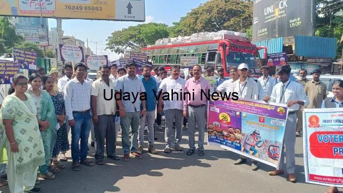 ಉದಯವಾಹಿನಿ, ಆನೇಕಲ್ : ಲೋಕಸಭೆ ಚುನಾವಣೆ ಅಂಗವಾಗಿ ಆನೇಕಲ್ ತಾಲ್ಲೂಕಿನ ಚಂದಾಪುರ ಪುರಸಭೆ ವ್ಯಾಪ್ತಿಯಲ್ಲಿ ಆನೇಕಲ್ ತಾಲ್ಲೂಕು ಸ್ವೀಪ್ ಸಮಿತಿ ಹಾಗೂ ಚಂದಾಪುರ ಪುರಸಭೆ ಸಹಯೋಗದಲ್ಲಿ ಸಾರ್ವಜನಿಕರಿಗೆ ಹಾಗೂ ಯುವ ಮತದಾರರಿಗೆ ಮತದಾನದ ಬಗ್ಗೆ ಅರಿವು ಮೂಡಿಸುವ ಕಾರ್ಯಕ್ರಮವನ್ನು ಆಯೋಜಿಸಲಾಗಿತ್ತು.ಇನ್ನು ಮತದಾನ ಜಾಗೃತಿ ಕಾರ್ಯಕ್ರಮಕಕ್ಕೆ ಚಂದಾಪುರ ಪುರಸಭೆಯ ಮುಖ್ಯಾದಿಕಾರಿ ಶ್ರೀನಿವಾಸ್ ರವರು ಮತ್ತು ಕಂದಾಯ ಅದಿಕಾರಿಯಾದ ಸುದಾಕರ್ ರವರು ಚಾಲನೆ ನೀಡಿ