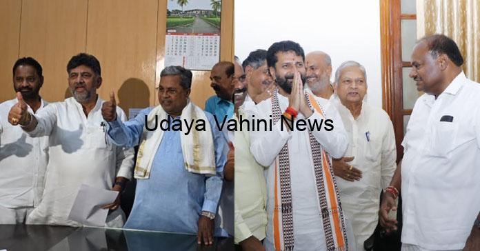ವಿಧಾನಸಭೆಯಿಂದ ವಿಧಾನಪರಿಷತ್ಗೆ ಚುನಾವಣೆ ನಡೆಯುವ 11 ಕ್ಷೇತ್ರಗಳ ಚುನಾವಣಾ ಪ್ರಕ್ರಿಯೆಯಲ್ಲಿ ನಾಮಪತ್ರ ಸಲ್ಲಿಕೆಯ ವೇಳೆ ಮುಖ್ಯಮಂತ್ರಿ ಸಿದ್ದರಾಮಯ್ಯ, ಉಪಮುಖ್ಯಮಂತ್ರಿ ಎಚ್.ಡಿ.ಕುಮಾರಸ್ವಾಮಿ ಪರಸ್ಪರ ಎದುರಾಗಿದ್ದಾರೆ. ವಿಧಾನಸಭೆಯ ಕಾರ್ಯದರ್ಶಿಯವರ ಕಚೇರಿಗೆ ಮೊದಲು ಭೇಟಿ ನೀಡಿದ್ದ ಕುಮಾರಸ್ವಾಮಿ ತಮ ಅಭ್ಯರ್ಥಿಯ ನಾಮಪತ್ರ ಸಲ್ಲಿಕೆ ಬಳಿಕ ಹೊರಬಂದರು.