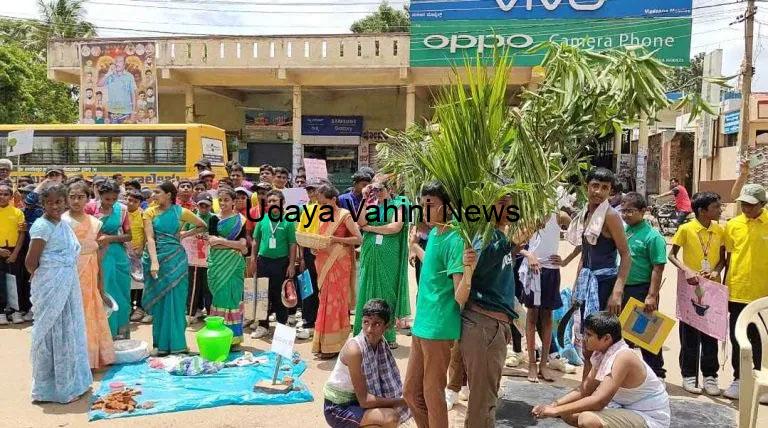 ಉದಯವಾಹಿನಿ, ವಿಜಯಪುರ: ಪಟ್ಟಣದ ರೋಡಹಳ್ಳಿ ಬಳಿಯ ಗುರುಕುಲ ಇಂಟರ್ನ್ಯಾಷನಲ್ ಶಾಲಾ ಮಕ್ಕಳು ವಿಶ್ವ ಪರಿಸರ ದಿನದ ಮಹತ್ವ , ಜಾಗೃತಿ ಮತ್ತು ಜಾಥಾ ಕಾರ್ಯಕ್ರಮವನ್ನು ಪಟ್ಟಣದ ಅಂಕತಟ್ಟಿ ನಂಜುಡಪ್ಪ ವೃತ್ತದಿಂದ ಹೊರಟು ಹೊಸ ಬಸ್ ನಿಲ್ದಾಣದಲ್ಲಿ ಮಾನವಸರಪಳಿ ನಿರ್ಮಿಸಿ ನಾಟಕದ ಮೂಲಕ ಪರಿಸರದ ಜಾಗೃತಿ ಅರಿವನ್ನು ಮನಕ್ಕೆ ಮುಟ್ಟುವಂತೆ ಮಾಡಿದರು.