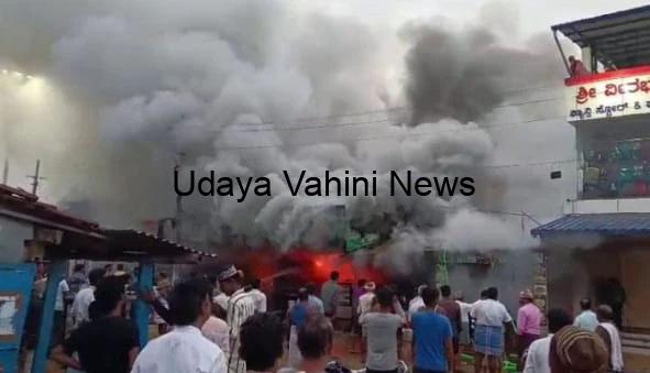 ಎಲೆಕ್ಟ್ರಿಕ್ ಅಂಗಡಿ, ಬೇಕರಿ, ಬೊಂಬೆ ಅಂಗಡಿ, ಪೂಟ್ ವೇರ್ ಹಾಗೂ ಹೋಟೆಲ್ ಗಳಿಗೆ ಬೆಂಕಿ ಹೊತ್ತಿಕೊಂಡಿದೆ.