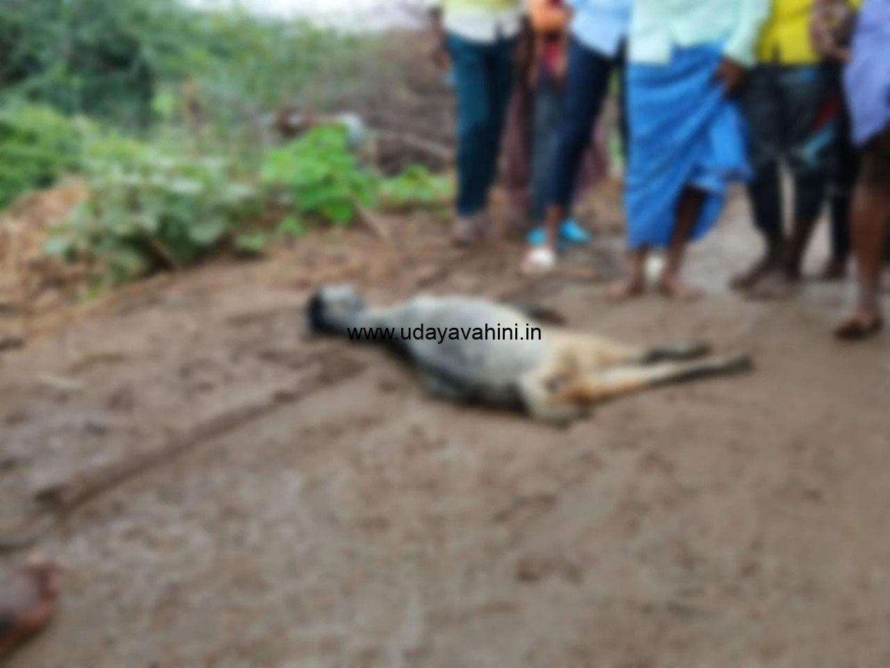ಆದರೆ, ಮಳೆಯಿಂದಾಗಿ ತಂತಿಯಲ್ಲಿ ವಿದ್ಯುತ್ ಹರಿದು ರಸ್ತೆಯ ಮೇಲೆ ಹೋಗುತ್ತಿದ್ದ ಮೇಕೆಗೆ ವಿದ್ಯುತ್ ತಗುಲಿ ಸ್ಥಳದಲ್ಲಿಯೇ ಮೃತಪಟ್ಟಿದೆ.