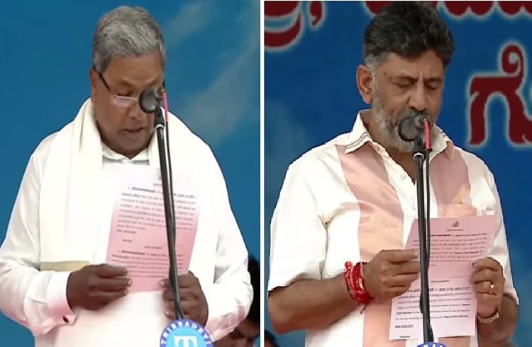 ಉದಯವಾಹಿನಿ, ಬೆಂಗಳೂರು: ಮುಖ್ಯಮಂತ್ರಿಯಾಗಿ ಸಿದ್ಧರಾಮಯ್ಯ 2ನೇ ಬಾರಿಗೆ, ಉಪ ಮುಖ್ಯಮಂತ್ರಿಯಾಗಿ ಡಿ.ಕೆ ಶಿವಕುಮಾರ್ ಅವರು ಇಂದು ಪ್ರಮಾಣವಚನ ಸ್ವೀಕರಿಸಿದರು.ಬೆಂಗಳೂರಿನ ಕಂಠೀರವ ಕ್ರೀಡಾಂಗಣದಲ್ಲಿ ನಡೆದಂತ ಬೃಹತ್ ಸಮಾರಂಭದಲ್ಲಿ ರಾಜ್ಯಪಾಲ ಥಾವರ್ ಚಂದ್ ಗೆಹ್ಲೋಟ್ ಅವರು, ಮುಖ್ಯಮಂತ್ರಿ, ಉಪ ಮುಖ್ಯಮಂತ್ರಿಗಳಿಗೆ ಗೌಪ್ಯ ಪ್ರಮಾಣವಚನ ಭೋಧಿಸಿದರು.ಕರ್ನಾಟಕದ ಮುಖ್ಯಮಂತ್ರಿಯಾಗಿ ಇಂದು ದೇವರ ಹೆಸರಿನಲ್ಲಿ ಸಿದ್ಧರಾಮಯ್ಯ ಅವರು 2ನೇ ಬಾರಿಗೆ ಪ್ರಮಾಣವಚನ ಸ್ವೀಕರಿಸಿದರು. ಉಪ ಮುಖ್ಯಮಂತ್ರಿಯಾಗಿ ಅಜ್ಜಯ್ಯನ ಹೆಸರಿನಲ್ಲಿ ಕೆಪಿಸಿಸಿ ಅಧ್ಯಕ್ಷ ಡಿ.ಕೆ ಶಿವಕುಮಾರ್ ಅವರು ಪ್ರಮಾಣವಚನ ಸ್ವೀಕರಿಸಿದರು.ಕಾಂಗ್ರೆಸ್ ಶಾಸಕಾಂಗ ಪಕ್ಷದ (ಸಿಎಲ್ ಪಿ) ಮುಖ್ಯಸ್ಥ ಸಿದ್ದರಾಮಯ್ಯ ಮತ್ತು ಪಕ್ಷದ ರಾಜ್ಯ ಘಟಕದ ಅಧ್ಯಕ್ಷ ಡಿ.ಕೆ.ಶಿವಕುಮಾರ್ ಅವರು ಇಂದು ಕ್ರಮವಾಗಿ ಮುಖ್ಯಮಂತ್ರಿ ಮತ್ತು ಉಪಮುಖ್ಯಮಂತ್ರಿಯಾಗಿ ಪ್ರಮಾಣ ವಚನ ಸ್ವೀಕರಿಸಿದರು.