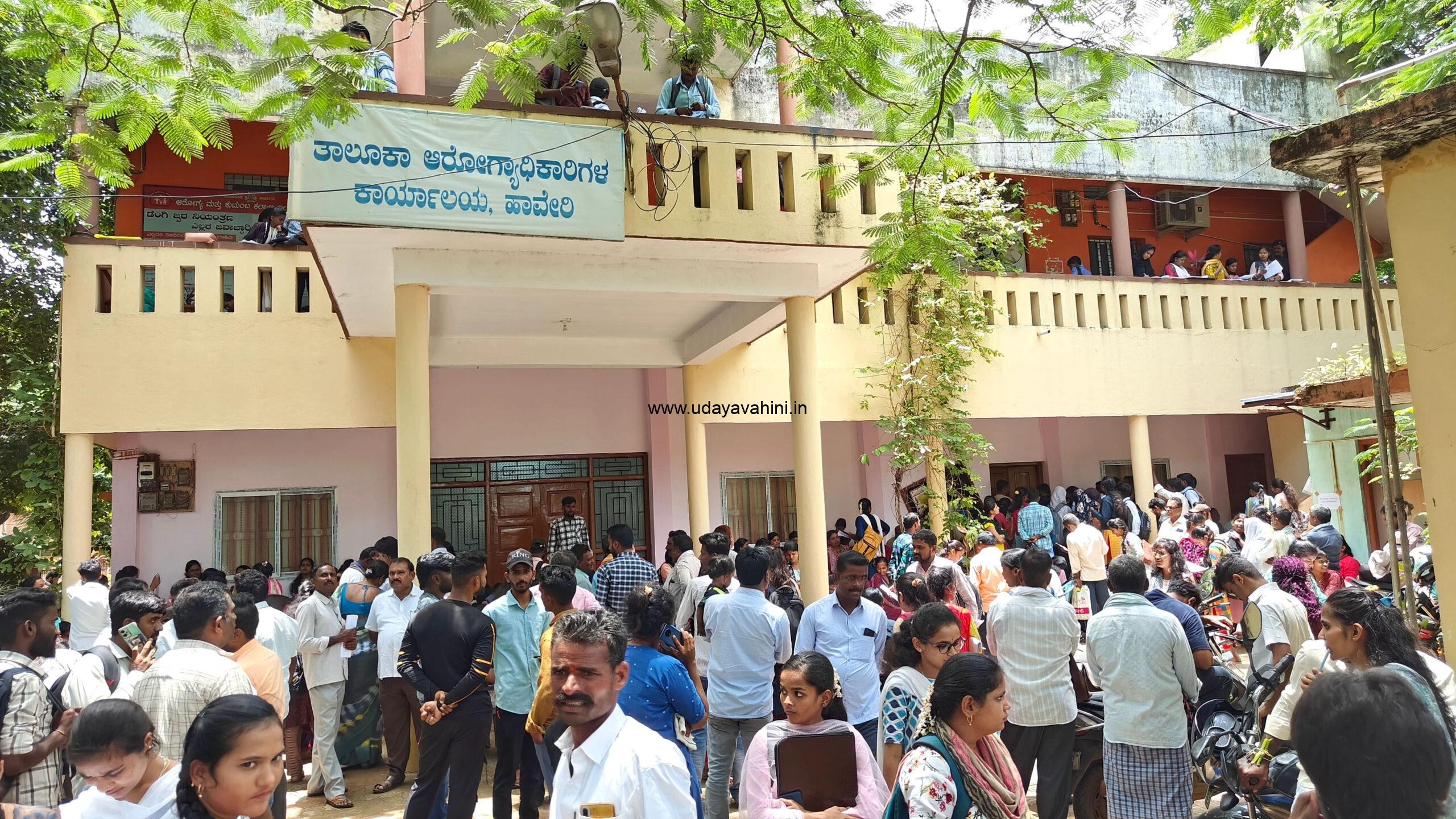 ರಾಷ್ಟ್ರೀಯ ಆರೋಗ್ಯ ಅಭಿಯಾದಡಿ ಖಾಲಿ ಇರುವ 118 ಹುದ್ದೆಗಳಿಗೆ ಅರ್ಹರಿರುವ ಅಭ್ಯರ್ಥಿಗಳು ಸಂದರ್ಶನಕ್ಕೆ ಹಾಜರಾಗಿದ್ದರು. ಹೊರ ಜಿಲ್ಲೆಗಳ ಆಕಾಂಕ್ಷಿಗಳು, ಹೆಚ್ಚಿನ ಸಂಖ್ಯೆಯಲ್ಲಿ ಬಂದಿದ್ದರು.
