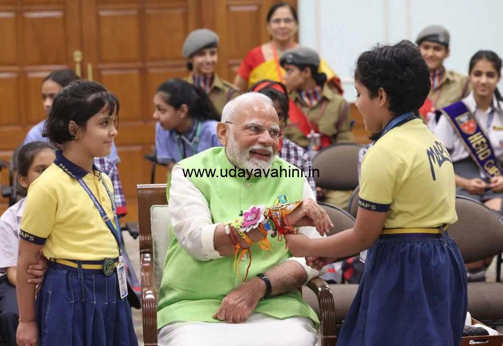 ರಕ್ಷಾ ಬಂಧನದ ಹಬ್ಬದ ಹಿನ್ನೆಲೆಯಲ್ಲಿ ವಿದ್ಯಾರ್ಥಿಗಳು, ಪುಟಾಣಿಗಳು ಆಗಮಿಸಿ ರಾಖಿ ಕಟ್ಟಿದ ವಿಶೇಷ ಸಂದರ್ಭದ ವಿಡಿಯೋವನ್ನು ಪ್ರಧಾನಿ ಮೋದಿ ಟ್ವೀಟ್ ಮೂಲಕ ಹಂಚಿಕೊಂಡಿದ್ದಾರೆ.