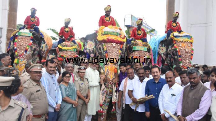 ಉದಯವಾಹಿನಿ, ಮೈಸೂರು: ನಾಡಹಬ್ಬ ದಸರಾಗೆ ಭರದ ಸಿದ್ಧತೆ ನಡೆಯುತ್ತಿದ್ದು, ಪ್ರಯಾಣ ಮಾಡಿ ವಿಶ್ರಾಂತಿಯಲ್ಲಿದ್ದ ಗಜಪಡೆ ಇಂದು ಅದ್ಧೂರಿಯಾಗಿ ಅರಮನೆ ಪ್ರವೇಶಿಸಿದೆ. ಆನೆಗಳ ಆಗಮನದಿಂದ ದಸರಾ ವೈಭವ ಸಾಂಸ್ಕೃತಿಕ ನಗರಿಯಲ್ಲಿ ಕಳೆಗಟ್ಟಿದೆ. ಅರಮನೆಯ ಜಯಮಾರ್ತಾಂಡ ದ್ವಾರದ ಬಳಿ ಗಜಪಡೆಗೆ ಶಾಸೋಕ್ತವಾಗಿ ಪೂಜೆ ಸಲ್ಲಿಸಿ ಅದ್ಧೂರಿಯಾಗಿ ಸ್ವಾಗತ ಕೋರಲಾಯಿತು.