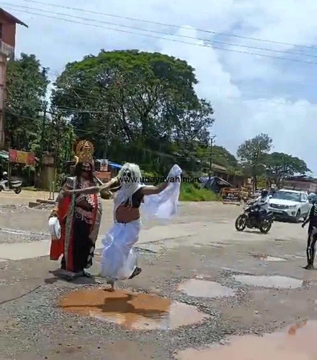 ಉದಯವಾಹಿನಿ, ಉಡುಪಿ: ಕೃಷ್ಣಾಷ್ಟಮಿಯ ಅಂಗವಾಗಿ ಯಮ, ಚಿತ್ರಗುಪ್ತನ ವೇಷ ಹಾಕಿದ ವೇಷಧಾರಿಗಳು ನಗರದಲ್ಲಿ ರಸ್ತೆ ಹೊಂಡಗಳ ಬಗ್ಗೆ ಜಾಗೃತಿ ಮೂಡಿಸುವ ಮೂಲಕ ಗಮನ ಸೆಳೆದಿದ್ದಾರೆ. ನಗರದ ಕರಾವಳಿ ಬೈಪಾಸ್ನಿಂದ ಮಲ್ಪೆಗೆ ತೆರಳುವ ಹೆದ್ದಾರಿಯಲ್ಲಿ ಹೊಂಡಗಳು ನಿರ್ಮಾಣವಾಗಿ ವಾಹನ ಸವಾರರು ನಿತ್ಯ ಸಂಕಷ್ಟ ಅನುಭವಿಸುತ್ತಿದ್ದಾರೆ.