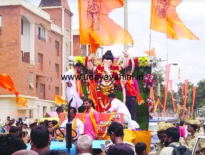 ಉದಯವಾಹಿನಿ, ಹುಬ್ಬಳ್ಳಿ : ನಗರದ ಚನ್ನಮ್ಮ ವೃತ್ತದ ಬಳಿಯ ಈದ್ಗಾ ಮೈದಾನಲ್ಲಿ ಪ್ರತಿಷ್ಠಾಪಿಸಿದ ಗಣೇಶ ಮೂರ್ತಿಯ ವಿಸರ್ಜನೆ ಪೂರ್ವದಲ್ಲಿ ಇಂದು ಸಾವಿರಾರು ಭಕ್ತಾದಿಗಳ ಸಮ್ಮುಖದಲ್ಲಿ ವಿಜೃಂಭಣೆಯಿಂದ ಮೆರವಣಿಗೆ ಜರುಗಿತು.