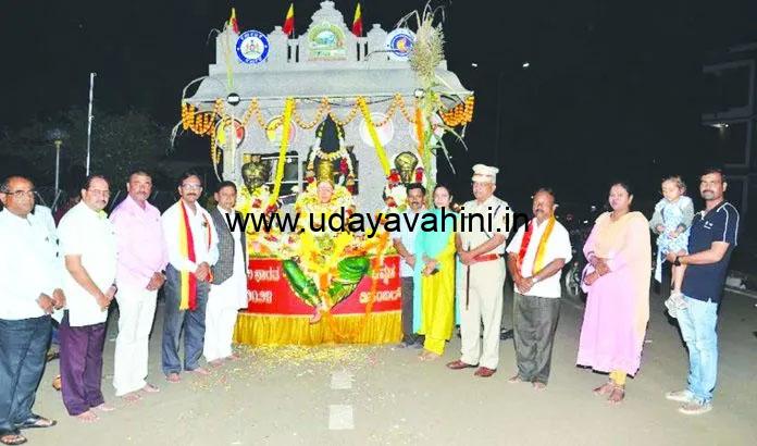 ಉದಯವಾಹಿನಿ, ಗದಗ : ಮಂಡ್ಯದಲ್ಲಿ ಡಿಸೆಂಬರ್ ನಲ್ಲಿ ಜರುಗಲಿರುವ 87 ನೇ ಅಖಿಲ ಭಾರತ ಕನ್ನಡ ಸಾಹಿತ್ಯ ಸಮ್ಮೇಳನದ ಪ್ರಯುಕ್ತ ರಾಜ್ಯಾದ್ಯಂತ ಸಂಚರಿಸುತ್ತಿರುವ ಕನ್ನಡ ಜ್ಯೋತಿ ರಥವು, ಗದಗ ನಗರಕ್ಕೆ ಆಗಮಿಸಿತು. ನಗರದ ಚನ್ನಮ್ಮಾ ವೃತ್ತಕ್ಕೆ ಆಗಮಿಸುತ್ತಿದ್ದಂತೆ ಜಿಲ್ಲಾಡಳಿತ, ಜಿಲ್ಲಾ ಕನ್ನಡ ಸಾಹಿತ್ಯ ಪರಿಷತ್ತು ಹಾಗೂ ವಿವಿಧ ಕನ್ನಡ ಪರ ಸಂಘಟನೆ ಬರಮಾಡಿಕೊಂಡು ತಾಯಿ ಭುವನೇಶ್ವರಿ ಮೂರ್ತಿಗೆ ಪೂಜೆ ಸಲ್ಲಿಸಿದರು.