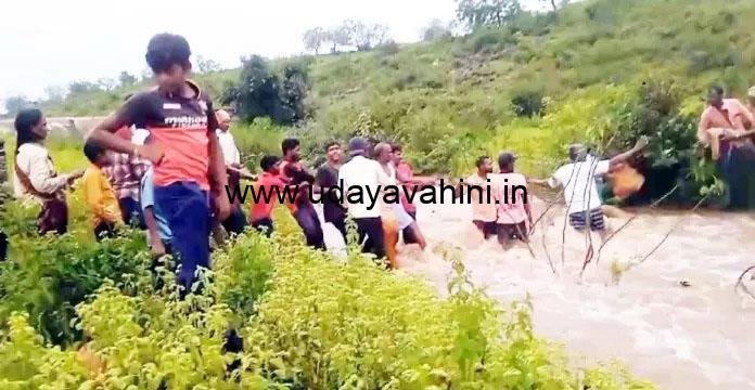 ಸೋಯಾಬೀನ್ ರಾಶಿಗೆಂದು ರೈತರು ಜಮೀನುಗಳಿಗೆ ತೆರಳಿದರು, ಈ ವೇಳೆ ಸಂಜೆ 4 ರ ಸುಮಾರಿಗೆ ಇದ್ದಕ್ಕಿದ್ದಂತೆ ಭಾರಿ ಪ್ರಮಾಣದಲ್ಲಿ ಮಳೆ ಸುರಿದಿದೆ. ಮಳೆಯಿಂದಾಗಿ ಭರ್ತಿಯಾದ ಚಕ್ ಡ್ಯಾಮ್ ಒಂದು ತುಂಬಿ ಹರಿದಿದ್ದು, ಹೀಗಾಗಿ ರಭಸವಾಗಿ ಹರಿಯುತ್ತಿರುವ ಹಳ್ಳದ ನೀರು ದಾಟಲು ಸಾಧ್ಯವಾಗದೆ ರೈತರು ಪರದಾಡಿದ್ದಾರೆ. ಸುದ್ದಿ ತಿಳಿದು ಸ್ಥಳಕ್ಕೆ ಭಾವಿಸಿದ ಗ್ರಾಮದ ಪ್ರಮುಖರಾದ ನಾಮದೇವ ಚಿಂತಾಲೆ, ಸುನಿಲ್ ಖೋಲೆ, ಪವನ್ ಚಿಂತಾಲೆ, ವಾಮನರಾವ್ ಜಮಾದಾರ್, ಓಂಕಾರ್ ಚಿಂತಾಲೆ ಸೇರಿದಂತೆ ಪ್ರಮುಖರು ಹಳ್ಳದ ಆಚೆ ಸಿಲುಕಿದ ಮಹಿಳೆಯರು ಸೇರಿದಂತೆ ಸುಮಾರು 20ಕ್ಕೂ ಅಧಿಕ ಜನ ರೈತರನ್ನು ಹಗ್ಗದ ಸಹಾಯದೊಂದಿಗೆ ಹರಸಹಾಸ ಪಟ್ಟು ಹಳ್ಳದಾಟಿಸುವಲ್ಲಿ ಯಶಸ್ವಿಯಾಗಿದ್ದಾರೆ. ಭಾರಿ ಪ್ರಮಾಣದಲ್ಲಿ ಮಳೆ ಆದಾಗ ಈ ಸ್ಥಳದಲ್ಲಿ ರೈತರು ಸಮಸ್ಯೆ ಎದುರಿಸುವಂತಾಗಿದೆ. ಸಂಬಂಧಿತ ಇಲಾಖೆ ಅಧಿಕಾರಿಗಳು ಈ ಸ್ಥಳದಲ್ಲಿ ಸೇತುವೆ ನಿರ್ಮಾಣ ಮಾಡುವ ಮೂಲಕ ರೈತರಿಗೆ ಅನುಕೂಲ ಕಲ್ಪಿಸಿಕೊಡಬೇಕು ಎಂದು ಗ್ರಾಮಸ್ಥರು ಒತ್ತಾಯಿಸಿದ್ದಾರೆ.