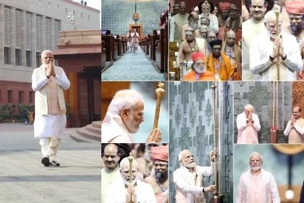 1. ಪ್ರಧಾನಿ ಮೋದಿ ಬೆಳಗ್ಗೆ 10.30ಕ್ಕೆ ಹೊಸ ಸಂಸತ್ ಭವನವನ್ನು ತಲುಪಿದರು. ಸ್ವಲ್ಪ ಸಮಯದ ನಂತರ ಮೋದಿ ಮತ್ತು ಲೋಕಸಭಾ ಸ್ಪೀಕರ್ ಓಂ ಬಿರ್ಲಾ ಅವರು ಪೂಜೆಗೆ ಕುಳಿತರು. ಪೂಜೆ ಮುಗಿದ ನಂತರ, ಪ್ರಧಾನಿ ಮೋದಿ ಐತಿಹಾಸಿಕ ರಾಜದಂಡ ‘ಸೆಂಗೋಲ್’ಗೆ ಸಾಷ್ಟಾಂಗ ನಮಸ್ಕಾರ ಮಾಡಿದರು.