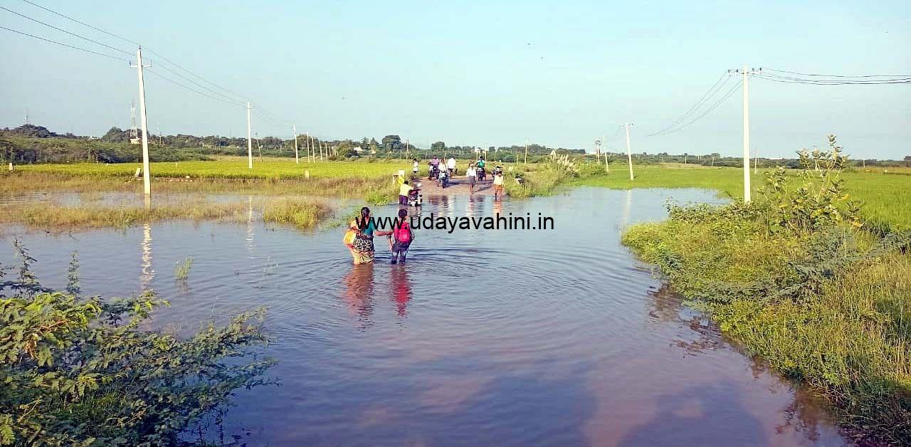 ಉದಯವಾಹಿನಿ, ಪಾವಗಡ: ತಾಲ್ಲೂಕಿನ ವಳ್ಳೂರು ಗ್ರಾಮದ ಕೆರೆ ಕೋಡಿ ಹರಿದಿದ್ದು, ಸುತ್ತಮುತ್ತಲ ಪ್ರದೇಶದಲ್ಲಿನ ಬೆಳೆ ಹಾಳಾಗಿದೆ.ಹಲವು ದಿನಗಳಿಂದ ಬಿದ್ದ ಮಳೆಯಿಂದಾಗಿ ವಳ್ಳೂರು ಕೆರೆ ತುಂಬಿ ಕೋಡಿ ಬಿದ್ದಿದೆ. ವಳ್ಳೂರಿನಿಂದ ಇಂಟೂರಾಯನಹಳ್ಳಿ ಗ್ರಾಮಕ್ಕೆ ಸಂಪರ್ಕ ಕಲ್ಪಿಸುವ ರಸ್ತೆಯಲ್ಲಿ ನೀರು ಹರಿಯುತ್ತಿದೆ. ಗ್ರಾಮಸ್ಥರು ಗ್ರಾಮದಿಂದ ಬೇರೆಡೆ ಹೋಗಲಾಗುತ್ತಿಲ್ಲ. ಇತರೆಡೆಗಳಿಂದ ಗ್ರಾಮಕ್ಕೆ ಬರಲಾಗದೆ ಸಾಕಷ್ಟು ಸಮಸ್ಯೆ ಅನುಭವಿಸುತ್ತಿದ್ದಾರೆ.ಕೆರೆ ತುಂಬಿ ಕೋಡಿ ಬಿದ್ದಿರುವುದು ಸಂತಸ ತಂದಿದೆ. ಆದರೆ ಕೆರೆ ಸುತ್ತಮುತ್ತಲ ಪ್ರದೇಶಗಳಲ್ಲಿ ಬೆಳೆದಿದ್ದ ರಾಗಿ, ಭತ್ತ, ಶೇಂಗಾ, ತೊಗರಿ, ಹತ್ತಿ ಬೆಳೆಗಳು ನೀರಿನಲ್ಲಿ ಮುಳುಗಿ ಸಂಪೂರ್ಣ ಹಾಳಾಗಿವೆ. ಲಕ್ಷಾಂತರ ರೂಪಾಯಿ ನಷ್ಟವಾಗಿದೆ. ಸಂಬಂಧಿಸಿದ ಅಧಿಕಾರಿಗಳು ಸ್ಥಳ ಪರಿಶೀಲಿಸಿ ಪರಿಹಾರ ಕೊಡಿಸಬೇಕು ಎಂದು ರೈತರು ಒತ್ತಾಯಿಸಿದ್ದಾರೆ.