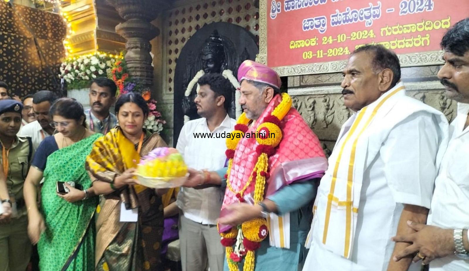 ಹಿಂದೆಯೂ ಹಾಸನಾಂಬೆ ದೇವಿ ದರ್ಶನಕ್ಕೆ ಬಂದಿದ್ದೆ. ಹಾಗೆಯೇ ಇಂದು ಕೂಡ ಬಂದಿದ್ದೇನೆ. ರಾಜ್ಯದ ಜನತೆಗೆ ಐಶ್ವರ್ಯ, ವ್ಯವಸಾಯ, ಸಮೃದ್ದಿ ಕೊಡಲಿ. ರಾಜ್ಯದ ಜನತೆಗೆ ಒಳ್ಳೆಯದು ಮಾಡಲಿ ಎಂದು ಪ್ರಾರ್ಥಿಸಿದ್ದೇನೆ ಎಂದರು.ರಾಜಕಾರಣದ ಬಗ್ಗೆ ಮಾತನಾಡಲು ನಿರಾಕರಿಸಿದ ಡಿ.ಕೆ. ಶಿವಕುಮಾರ್, ‘ಇದು ರಾಜಕೀಯ ಮಾತನಾಡುವ ಸ್ಥಳವಲ್ಲ. ಬೇರೆ ಕಡೆ ಮಾತನಾಡೋಣ’ ಎಂದರು.