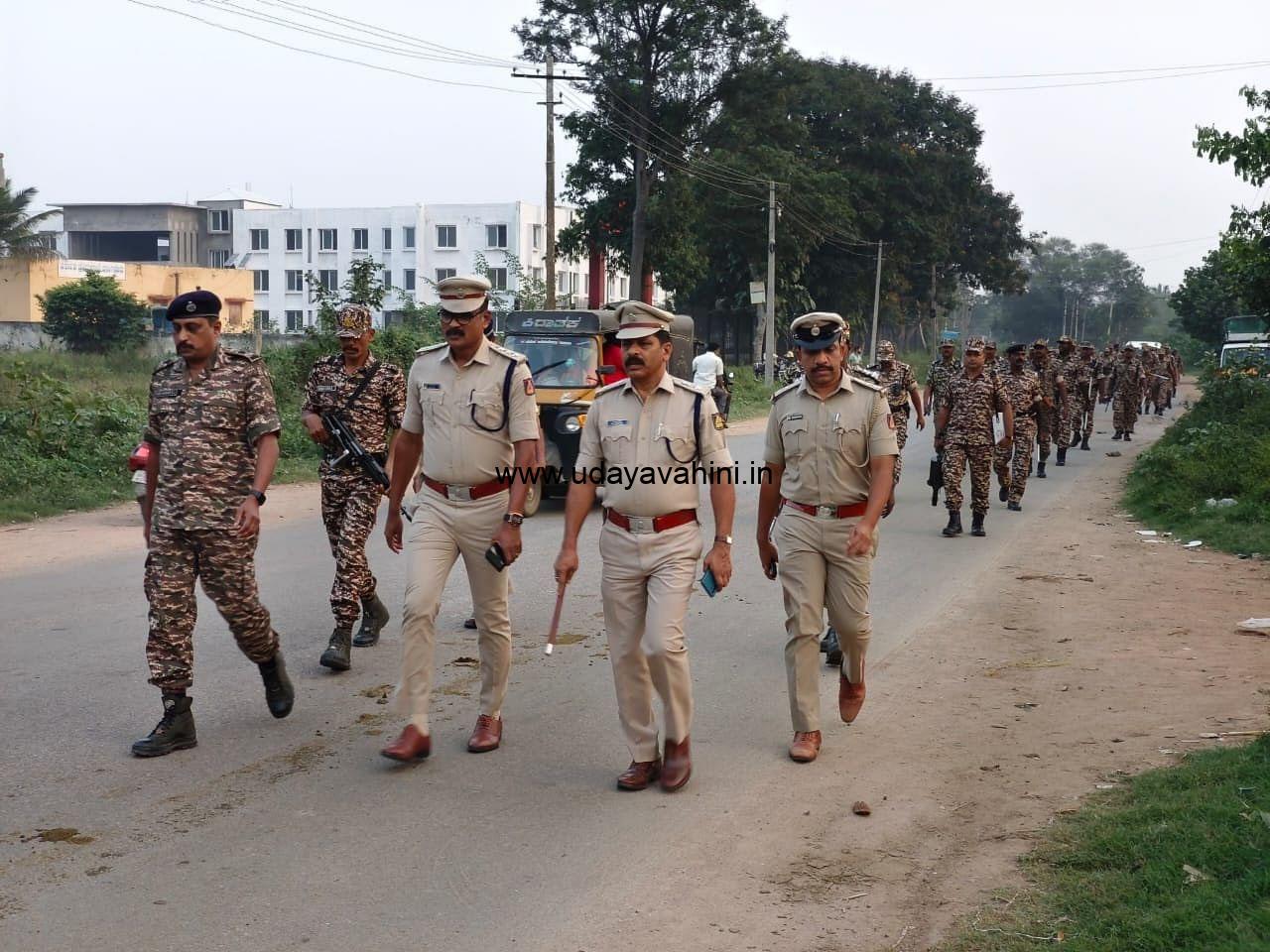 ಉದಯವಾಹಿನಿ, ಚನ್ನಪಟ್ಟಣ : ಉಪ ಚುನಾವಣೆ ಕಣವಾಗಿರುವ ತಾಲ್ಲೂಕಿನಲ್ಲಿ ಪೊಲೀಸರು ಮತ್ತು ಅರೆ ಸೇನಾಪಡೆ ಭಾನುವಾರ ಪಥ ಸಂಚಲನ ನಡೆಸಿದರು.