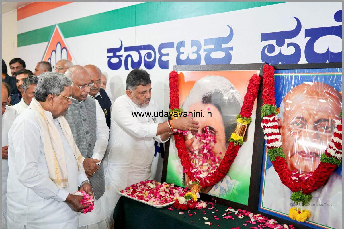 ಇಂದು ಕೆಪಿಸಿಸಿ ಕಚೇರಿಯಲ್ಲಿ ಇಂದಿರಾ ಗಾಂಧಿ ಪುಣ್ಯಸ್ಮರಣೆ ಕಾರ್ಯಕ್ರಮದಲ್ಲಿ ಎಐಸಿಸಿ ಅಧ್ಯಕ್ಷ ಮಲ್ಲಿಕಾರ್ಜುನ ಖರ್ಗೆ ಕೆಪಿಸಿಸಿ ಅಧ್ಯಕ್ಷ ಡಿ.ಕೆ ಶಿವಕುಮಾರ್, ಸಿಎಂ ಸಿದ್ದರಾಮಯ್ಯ, ಮಾಜಿ ಸಿಎಂ ವೀರಪ್ಪ ಮೋಯಿಲಿ, ಸಚಿವ ರಾಮಲಿಂಗಾರೆಡ್ಡಿ ಸೇರಿದಂತೆ ಹಲವರು ಭಾಗಿಯಾಗಿದ್ದರು.