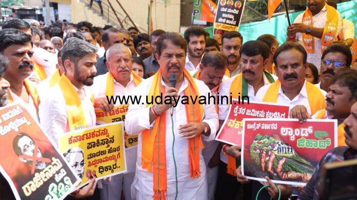 ಉದಯವಾಹಿನಿ, ಬೆಂಗಳೂರು: ವಕ್ಫ್ ಭೂಮಿ ವಿಚಾರವಾಗಿ ಸಚಿವ ಜಮೀರ್ ಅಹಮದ್ ಖಾನ್ ಅವರನ್ನು ಸಂಪುಟದಿಂದ ಕೈಬಿಡುವುದು, ತಕ್ಷಣವೇ ಗೆಜೆಟ್ ಅಧಿಸೂಚನೆ ಹಿಂಪಡೆಯುವುದು ಸೇರಿದಂತೆ ಹಲವು ಬೇಡಿಕೆಗಳನ್ನು ಮುಂದಿಟ್ಟುಕೊಂಡು ಪ್ರತಿಪಕ್ಷ ಬಿಜೆಪಿ ರಾಜ್ಯಾದ್ಯಂತ ಪ್ರತಿಭಟನೆ ನಡೆಸಿ ರಾಜ್ಯ ಸರ್ಕಾರಕ್ಕೆ ಬಿಸಿ ಮುಟ್ಟಿಸಿದೆ. ರಾಜಧಾನಿ ಬೆಂಗಳೂರು, ಮೈಸೂರು, ಚಾಮರಾಜನಗರ, ಹಾಸನ, ಕೋಲಾರ, ಚಿಕ್ಕಬಳ್ಳಾಪುರ, ತುಮಕೂರು, ಚಿತ್ರದುರ್ಗ, ಶಿವಮೊಗ್ಗ, ದಾವಣಗೆರೆ, ಹಾವೇರಿ, ಧಾರವಾಡ, ಬೆಳಗಾವಿ, ಕಲಬುರಗಿ, ಬಳ್ಳಾರಿ, ರಾಯಚೂರು, ಕೊಪ್ಪಳ ಸೇರಿದಂತೆ ರಾಜ್ಯದ ಎಲ್ಲಾ ಜಿಲ್ಲಾ ಮತ್ತು ತಾಲ್ಲೂಕು ಕೇಂದ್ರಗಳಲ್ಲಿ ಬೃಹತ್ ಪ್ರತಿಭಟನೆ ನಡೆಸಿ ಸರ್ಕಾರದ ವಿರುದ್ಧ ತೀವ್ರ ಆಕ್ರೋಶ ವ್ಯಕ್ತಪಡಿಸಿತು.