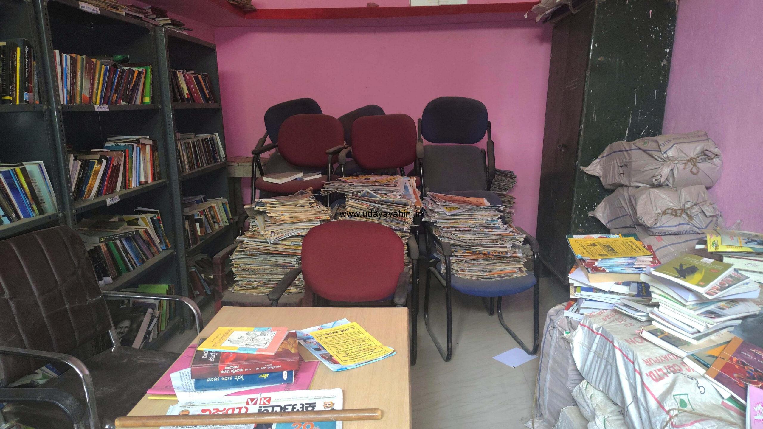 ದೂಳು ಹಿಡಿದ ಪುಸ್ತಕ, ಚೇರ್, ಟೇಬಲ್: ಗ್ರಂಥಾಲಯಕ್ಕೆ ಇಲಾಖೆ ನೀಡಿರುವ ಟೇಬಲ್, ಚೇರ್, ಪುಸ್ತಕಗಳು ಧೂಳು ಹತ್ತಿದ್ದು, ಎಲ್ಲಾ ಸಾಮಗ್ರಿಗಳು ಮೂಲೆಯಲ್ಲಿ ಇಡಲಾಗಿದೆ. ಒಳ ಕೋಣೆಯಲ್ಲಿರುವ ದಾಸ್ತಾನು ಕೊಠಡಿಯಲ್ಲಿ ವಿವಿಧ ಇಲಾಖೆ, ಮಹನೀಯರ ಇತಿಹಾಸ, ಸರ್ಕಾರ ಹಾಗೂ ಗ್ರಂಥಾಲಯ ಇಲಾಖೆ ನೀಡಿರುವ ಸ್ಪರ್ಧಾತ್ಮಕ ಪರೀಕ್ಷೆ, ಸಾಮಾನ್ಯ ಜ್ಞಾನ ಇತರೆ ವಿಷಯಗಳ ಪುಸ್ತಕಗಳನ್ನು ತುಂಬಿರುವ 20ಕ್ಕೂ ಹೆಚ್ಚು ಚೀಲಗಳು ಧೂಳು ತಿನ್ನುತ್ತಿವೆ. ದಾಸ್ತಾನು ಪುಸ್ತಕ ದಾಖಲಾತಿಯ ನಿರ್ವಹಣೆಯೇ ಇಲ್ಲವಾಗಿದೆ.