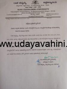 ರಾಣಿ ಚನ್ನಮ್ಮ ವಿಶ್ವವಿದ್ಯಾಲಯದ 2024-25ನೇ ಸಾಲಿನ ಬಿ ಎ. ಬಿಕಾಂ. ಬಿಎಸ್ಸಿ.( St ) ಬಿ ಸಿ ಎ ಬಿಬಿಎ. ಅಗಸ್ಟ್ ಸಪ್ಟಂಬರ್ ತಿಂಗಳಿನಲ್ಲಿ ಜರುಗಿದ ಎರಡು ಮತ್ತು ನಾಲ್ಕು ನೇ ಸೆಮೆಸ್ಟ್ರಿ ರೆಗ್ಯುಲರ್ ವಿದ್ಯಾರ್ಥಿಗಳ ಪರೀಕ್ಷೆ ಫಲಿತಾಂಶವನ್ನು ಸೆಮಿಸ್ಟರ್ ವಿದ್ಯಾರ್ಥಿಗಳ ಉನ್ನತ ವಿದ್ಯಾಭ್ಯಾಸಕ್ಕೆ ಯಾವುದೇ ತೊಂದರೆ ಆಗದಂತೆ ರಾಣಿ ಚನ್ನಮ್ಮ ವಿ ವಿ ಯು ಫಲಿತಾಂಶವನ್ನು ಅತಿ ಶೀಘ್ರದಲ್ಲಿ ಪ್ರಕಟಿಸಿದ್ದು ಶ್ಲಾಘನೀಯವಾಗಿದೆ. ವಿ ವಿ ಕುಲಸಚಿವರಾದ ರವೀಂದ್ರನಾಥ ಎನ್ ಕದಮ್ ರವರ ಸಮಯೋಚಿತ ನಿರ್ಧಾರವು ವಿದ್ಯಾರ್ಥಿ ಬಳಗ ಹಾಗೂ ಪೋಷಕರ ಮೆಚ್ಚುಗೆಗೆ ಪಾತ್ರವಾಗಿದೆ. ಫಲಿತಾಂಶವನ್ನು ಯು ಯು ಸಿ ಎಂ ಎಸ್ ಪ್ರೋಟಾನ್ ನಲ್ಲಿ ಪ್ರಕಟಿಸಲಾಗಿದೆ ಸದರಿ ಫಲಿತಾಂಶವನ್ನು 19/11/24 ಬೆಳ್ಳಿಗೆ 10ಘಂಟೆ ನಂತರ ಯು ಯು ಸಿ ಎಂ ಎಸ್ ಸ್ಟೂಡೆಂಟ್ ಪ್ರೋಟಲ್ ಮೂಲಕ ಪ್ರಕಟಿಸಲಾಗುವುದೆಂದು ಮಾನ್ಯ ಕುಲಸಚಿವರು ಪತ್ರಿಕಾ ಪ್ರಕಟಣೆಯಲ್ಲಿ ತಿಳಿಸಿರುತ್ತಾರೆ
