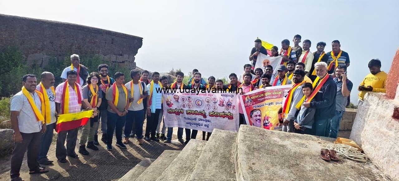 ಉದಯವಾಹಿನಿ, ಗೌರಿಬಿದನೂರು: ತಾಲ್ಲೂಕಿನ ಕನ್ನಡ ಸಾಹಿತ್ಯ ಪರಿಷತ್ತು, ಗುಡಿಬಂಡೆ ಮನೋರಂಜನೆ ಹಾಸನ ಗುಡಿಬಂಡೆ ಕೋಟೆ ಮೇಲೆ ಕನ್ನಡ ರಾಜ್ಯೋತ್ಸವ ತಾಲ್ಲೂಕು ಕನ್ನಡ ಸಾಹಿತ್ಯ ಪರಿಷತ್, ಕರ್ನಾಟಕ ರಕ್ಷಣಾ ವೇದಿಕೆ ಮತ್ತು ಹೊಯ್ಸಳ ಚಾರಣಿಗರ ತಂಡದ ಸದಸ್ಯರು ಭಾನುವಾರ ಗುಡಿಬಂಡೆ ಕೋಟೆಯ ತುದಿಯಲ್ಲಿ ಕನ್ನಡ ಬಾವುಟ ಹಾರಿಸುವ ಮೂಲಕ ಕನ್ನಡ ರಾಜ್ಯೋತ್ಸವ ಆಚರಿಸಿದರು. ಬೆಂಗಳೂರು ಗ್ರಾಮಾಂತರ ಬೀದರ್ ಧ್ವಜಾರೋಹಣವನ್ನು ಗುಡಿಬಂಡೆ ಕಸಾಪ ಅಧ್ಯಕ್ಷ ಬಿ.ಮಂಜುನಾಥ್ ನೆರವೇರಿಸಿದರು.