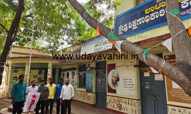 ಉದಯವಾಹಿನಿ, ಗಂಗಾವತಿ: ರಾಜ್ಯದ ಮಾಜಿ ಮುಖ್ಯಮಂತ್ರಿ, ಕೇಂದ್ರದ ಮಾಜಿ ಸಚಿವ ಎಸ್.ಎಂ. ಕೃಷ್ಣ ನಿಧನದ ಹಿನ್ನೆಲೆ ರಾಜ್ಯ ಸರ್ಕಾರ ಮೂರು ದಿನಗಳ ಕಾಲ ಶೋಕಾಚರಣೆ ಆದೇಶವನ್ನು ಜಾರಿ ಮಾಡಿದ್ದು ಸರ್ಕಾರಿ ಕಚೇರಿಗಳಲ್ಲಿ 3 ದಿನಗಳ ಕಾಲ ನಿತ್ಯವೂ ಅರ್ಧಕ್ಕೆ ಧ್ವಜಾರೋಹಣ ಮಾಡುವಂತೆ ಸೂಚನೆ ನೀಡಿದೆ. ಗಂಗಾವತಿ ನಗರದ ಮತ್ತು ತಾಲೂಕಿನ ಬಹುತೇಕ ಸರಕಾರಿ ಕಚೇರಿಗಳಲ್ಲಿ ರಾಷ್ಟ್ರ ಧ್ವಜವನ್ನು ಅರ್ಧಕ್ಕೆ ಏರಿಸಲಾಗಿದ್ದು, ಕ್ಷೇತ್ರ ಶಿಕ್ಷಣಾಧಿಕಾರಿಗಳ ಕಚೇರಿಯಲ್ಲಿ ಮಾತ್ರ ಅರ್ಧಕ್ಕೆ ರಾಷ್ಟ್ರ ಧ್ವಜಾರೋಹಣ ಮಾಡದೇ ಬಿಇಓ ಅವರು ನಿರ್ಲಕ್ಷ್ಯ ತೋರಿದ್ದಾರೆ. ಇದನ್ನು ಪ್ರತಿಭಟಿಸಿ ಎಸ್.ಎಫ್.ಐ. ಕಾರ್ಯಕರ್ತರು ಕಚೇರಿ ಎದುರು ಪ್ರತಿಭಟನೆ ನಡೆಸಿ ಬಿಇಓ ವಿರುದ್ಧ ಕೂಡಲೇ ಕಾನೂನು ಕ್ರಮ ಕೈಗೊಳ್ಳಬೇಕು. ಜೊತೆಗೆ ರಾಷ್ಟ್ರಧ್ವಜವನ್ನು ಅರ್ಧಕ್ಕೇರಿಸುವ ಮೂಲಕ ಗೌರವ ಸಲ್ಲಿಸುವಂತೆ ಒತ್ತಾಯಿಸಿದರು.