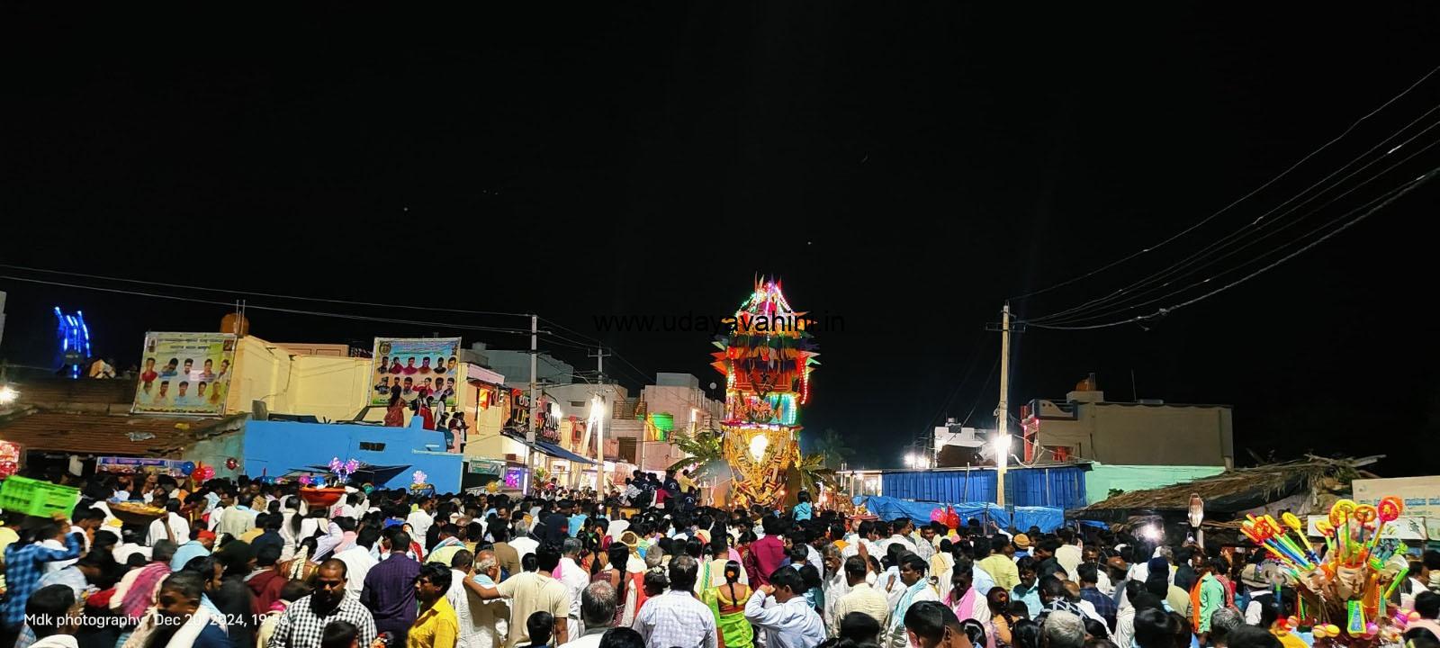 ಮುಸ್ಕೂರಿನ ಓಕಾರೇಶ್ವರ ಹುಚ್ಚನಾಗಲಿಂಗ ಮಠದ ರುದ್ರಮುನಿ ಶಿವಾಚಾರ್ಯ ಸ್ವಾಮೀಜಿ ನೇತೃತ್ವದಲ್ಲಿ ಬೆಳಿಗ್ಗೆಯಿಂದ ಸಂಜೆವರೆಗೆ ವಿಶೇಷ ಪೂಜೆ, ಕೈಂಕರ್ಯಗಳು ನಡೆದವು. ಸಂಜೆ 7 ಗಂಟೆ ವೇಳೆಗೆ ರಥೋತ್ಸವಕ್ಕೆ ಚಾಲನೆ ನೀಡಲಾಯಿತು. ಕೆಪಿಸಿಸಿ ಎಸ್.ಟಿ ಘಟಕದ ಅಧ್ಯಕ್ಷ ಎಂ.ಡಿ ಕೀರ್ತಿ ಕುಮಾರ್, ತಾಲ್ಲೂಕು ನೌಕರರ ಸಂಘದ ಅಧ್ಯಕ್ಷ ಎ.ಎಲ್.ತಿಪ್ಪೇಸ್ವಾಮಿ ಮುಂತಾದವರು ಹಾಜರಿದ್ದರು. ರಥದ ಮುಕ್ತಿ ಬಾವುಟವನ್ನು ಮುನ್ನೂರು ಗ್ರಾಮದ ತಿಪ್ಪೇಸ್ವಾಮಿ ಅವರು * 4 ಲಕ್ಷಕ್ಕೆ ಬಹಿರಂಗ ಹರಾಜಿನಲ್ಲಿ ಪಡೆದರು. ಕಳೆದ ಬಾರಿ ರಾಜ ಭರಮಲಿಂಗಪ್ಪ ಅವರು ₹ 6.90 ಲಕ್ಷಕ್ಕೆ ಮುಕ್ತಿ ಬಾವುಟವನ್ನು ಹರಾಜಿನಲ್ಲಿ ಪಡೆದಿದ್ದರು. ಗ್ರಾಮದಲ್ಲಿ ಎರಡು ದಿನಗಳ ಕಾಲ ಜಾತ್ರೆ ನಡೆಯುತ್ತಿದ್ದು, ಶನಿವಾರ ಸಾಮಾಜಿಕ ನಾಟಕದ ಪ್ರದರ್ಶನ ಏರ್ಪಡಿಸಲಾಗಿದೆ.