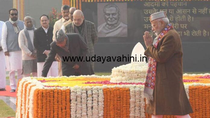 ಉಪರಾಷ್ಟ್ರಪತಿ ಜಗದೀಪ್ ಧನಕರ್ ಮತ್ತು ಲೋಕಸಭೆ ಸ್ಪೀಕರ್ ಓಂ ಬಿರ್ಲಾ ಜೊತೆಗೆ ವಾಜಪೇಯಿ ಅವರ ದತ್ತು ಕುಟುಂಬದ ಸದಸ್ಯರು ಉಪಸ್ಥಿತರಿದ್ದರು.ವಾಜಪೇಯಿ ಅವರು ಸಾಂವಿಧಾನಿಕ ಮೌಲ್ಯಗಳನ್ನು ಹೇಗೆ ಕಾಪಾಡಿದರು ಮತ್ತು ದೇಶಕ್ಕೆ ಹೊಸ ದಿಕ್ಕು ಮತ್ತು ಆವೇಗವನ್ನು ಹೇಗೆ ನೀಡಿದರು ಎಂಬುದರ ಪರಿಣಾಮ ಶಾಶ್ವತವಾಗಿ ಉಳಿಯುತ್ತದೆ ಎಂದು ಮೋದಿ ಎಕ್್ಸನಲ್ಲಿ ಪೋಸ್ಟ್ ಮಾಡಿದ್ದಾರೆ.