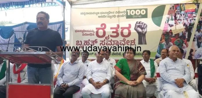 ಉದಯವಾಹಿನಿ, ವಿಜಯಪುರ: ದೇವನಹಳ್ಳಿ ತಾಲೂಕಿನ ಚನ್ನರಾಯಪಟ್ಣ ಹೋಬಳಿಯ ೧೩ ಗ್ರಾಮಗಳ ರೈತರು ನಡೆಸುತ್ತಿರುವ ’ಭೂ ಸ್ವಾಧಿನ ವಿರೋಧಿ ಹೋರಾಟ’ ಒಂದು ಸಾವಿರ ತಲುಪಿದ್ದು, ಚನ್ನರಾಯಪಟ್ಟಣ ಧರಣಿ ಸ್ಥಳದಲ್ಲಿ ರೈತರ ಬೃಹತ್ ಸಮಾವೇಶ ನಡೆಯಿತು.