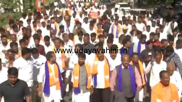 ಉದಯವಾಹಿನಿ, ಕಲಬುರಗಿ: ಗುತ್ತಿಗೆದಾರ ಸಚಿನ್ ಪಾಂಚಾಳ್ ಆತಹತ್ಯೆ ಪ್ರಕರಣ ಸಂಬಂಧ ಗ್ರಾಮೀಣಾಭಿವೃದ್ಧಿ ಮತ್ತು ಪಂಚಾಯತ್ರಾಜ್ ಸಚಿವ ಪ್ರಿಯಾಂಕ ಖರ್ಗೆ ರಾಜೀನಾಮೆಗೆ ಒತ್ತಾಯಿಸಿ ಬಿಜೆಪಿ ಇಂದು ಅವರ ನಿವಾಸಕ್ಕೆ ಮುತ್ತಿಗೆ ಹಾಕುವ ಪ್ರಯತ್ನ ಮಾಡಿತು.ವಿಧಾನಮಂಡಲದ ಉಭಯ ಸದನಗಳ ಪ್ರತಿಪಕ್ಷದ ನಾಯಕರಾದ ಆರ್.ಅಶೋಕ್, ಛಲವಾದಿ ನಾರಾಯಣಸ್ವಾಮಿ, ಮುಖಂಡರಾದ ಸುನೀಲ್ ವಲ್ಯಾಪುರೆ, ಸಿ.ಟಿ.ರವಿ, ಎಂ.ರವಿಕುಮಾರ್ ಸೇರಿದಂತೆ ಸುಮಾರು 5 ಸಾವಿರಕ್ಕೂ ಹೆಚ್ಚು ಕಾರ್ಯಕರ್ತರು ಪ್ರಿಯಾಂಕ ಖರ್ಗೆ ಅವರ ನಿವಾಸಕ್ಕೆ ಮುತ್ತಿಗೆ ಹಾಕಲು ಮುಂದಾದರು.